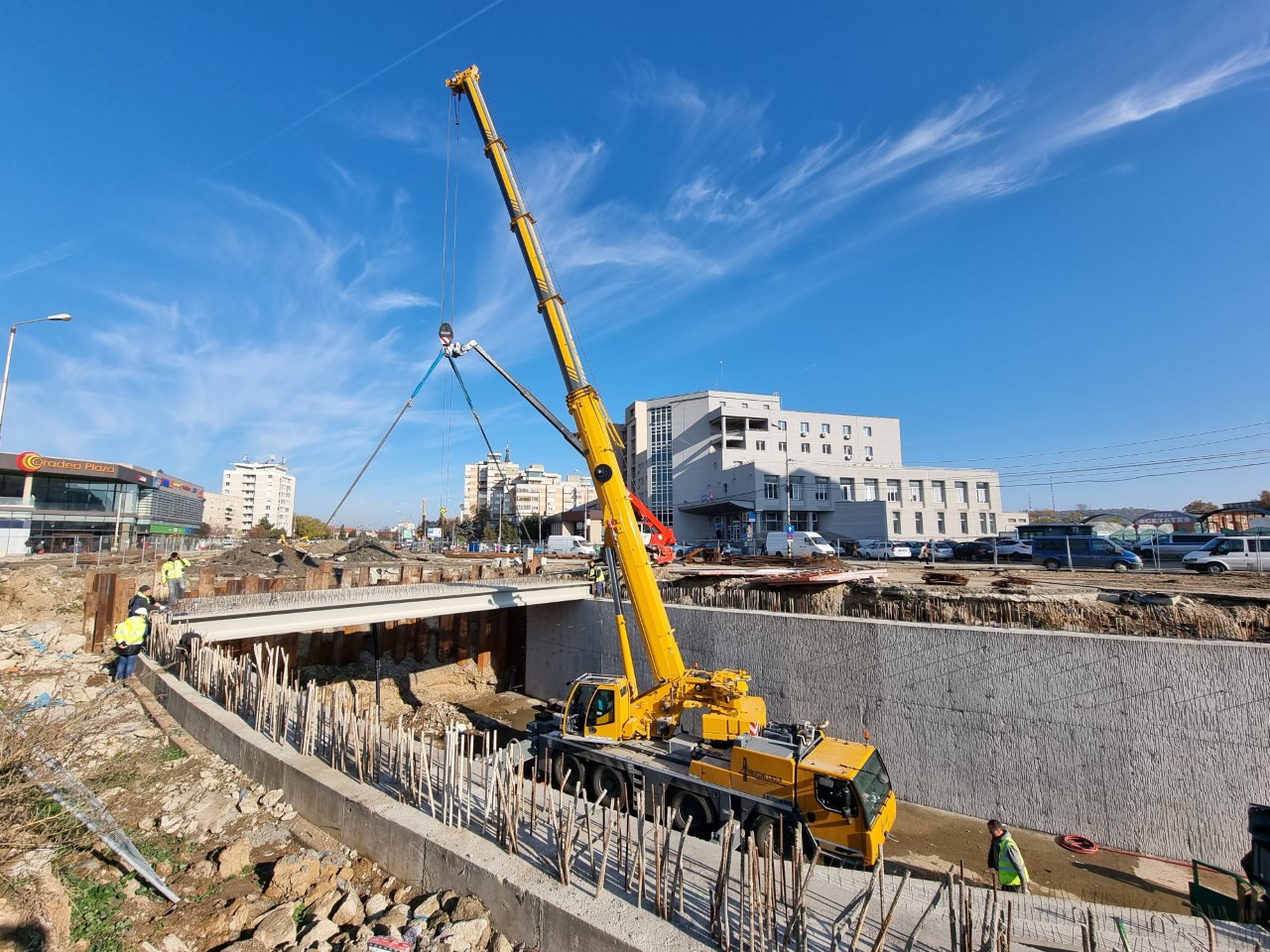 În două săptămâni, acoperișul de grinzi al pasajului rutier ar trebui să fie terminat. n același timp, a început și săparea rampei dinspre zona centrală, unde urmează să fie montate și palplanșele.