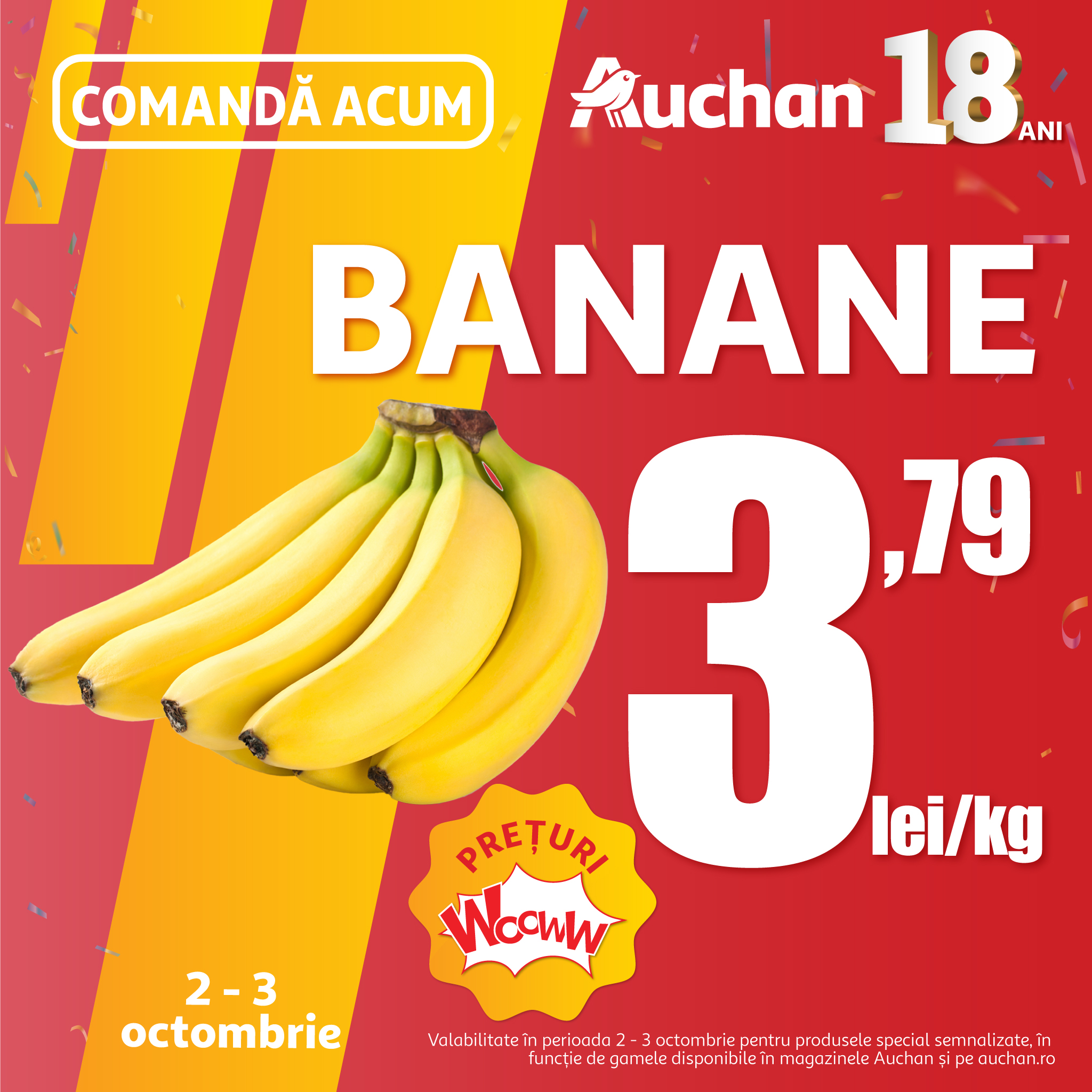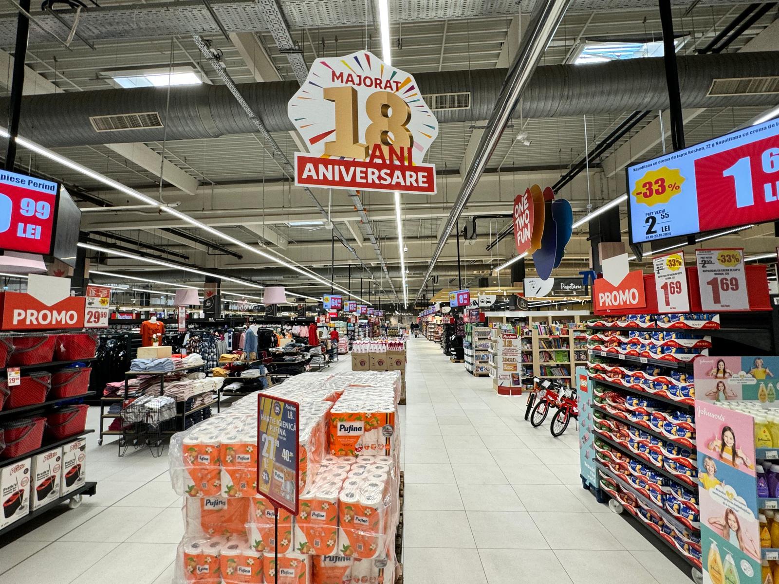 Pentru a sărbători dezvoltarea și crearea de valoare pentru români în 18 de ani de activitate Auchan, până pe 22 octombrie, magazinele își întâmpină clienții cu oferte avantajoase și reduceri substanțiale la mii de produse. În plus, în continuarea măsurilor de protejare a puterii de cumpărare a românilor, retailerul propune sute de beneficii prin cardul de fidelitate la o mulțime de produse, atât de la producători locali, cât și de la mărci de renume internațional.