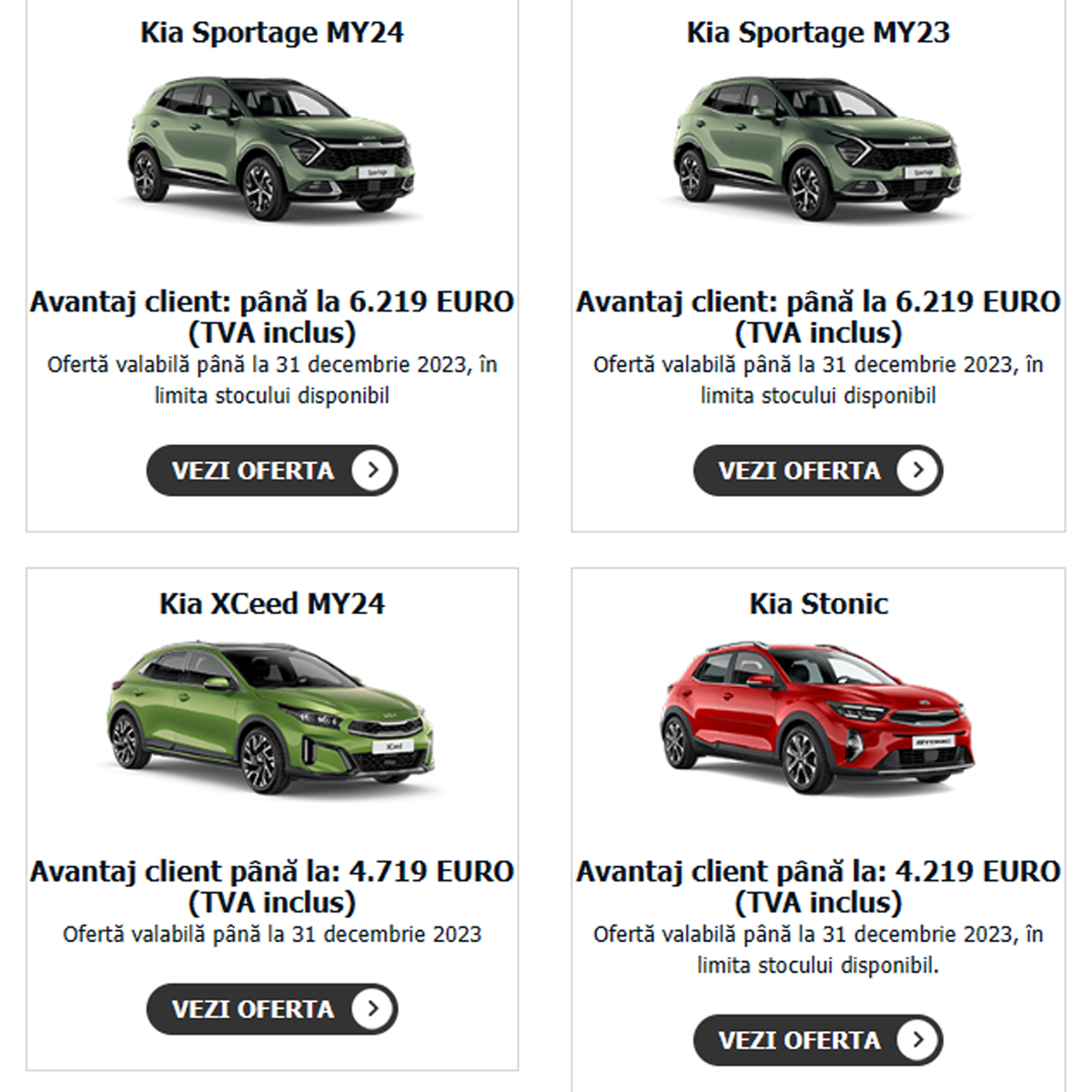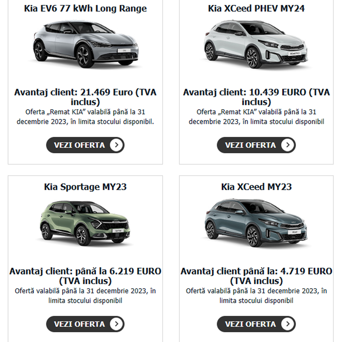 *Ofertă valabilă până la 31 decembrie 2023, în limita stocului disponibil, prin programul “Remat KIA”.