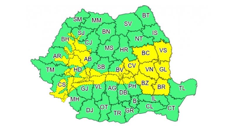 „În vestul țării pe arii extinse vor fi precipitații mixte, care vor favoriza pe alocuri depuneri de polei. Precipitațiile, moderate cantitativ, vor cumula local 15-20 l/mp și izolat 30-40 l/mp, mai ales în Banat și sudul Crișanei. La munte, la altiudini mai mici de 1400 m, ploile și lapovița vor determina topirea parțială a stratului de zăpadă existent. Vântul va avea intensificări în zona montană înaltă, cu viteze, în general, de 50-60 km/h”, transmit reprezentanții ANM.