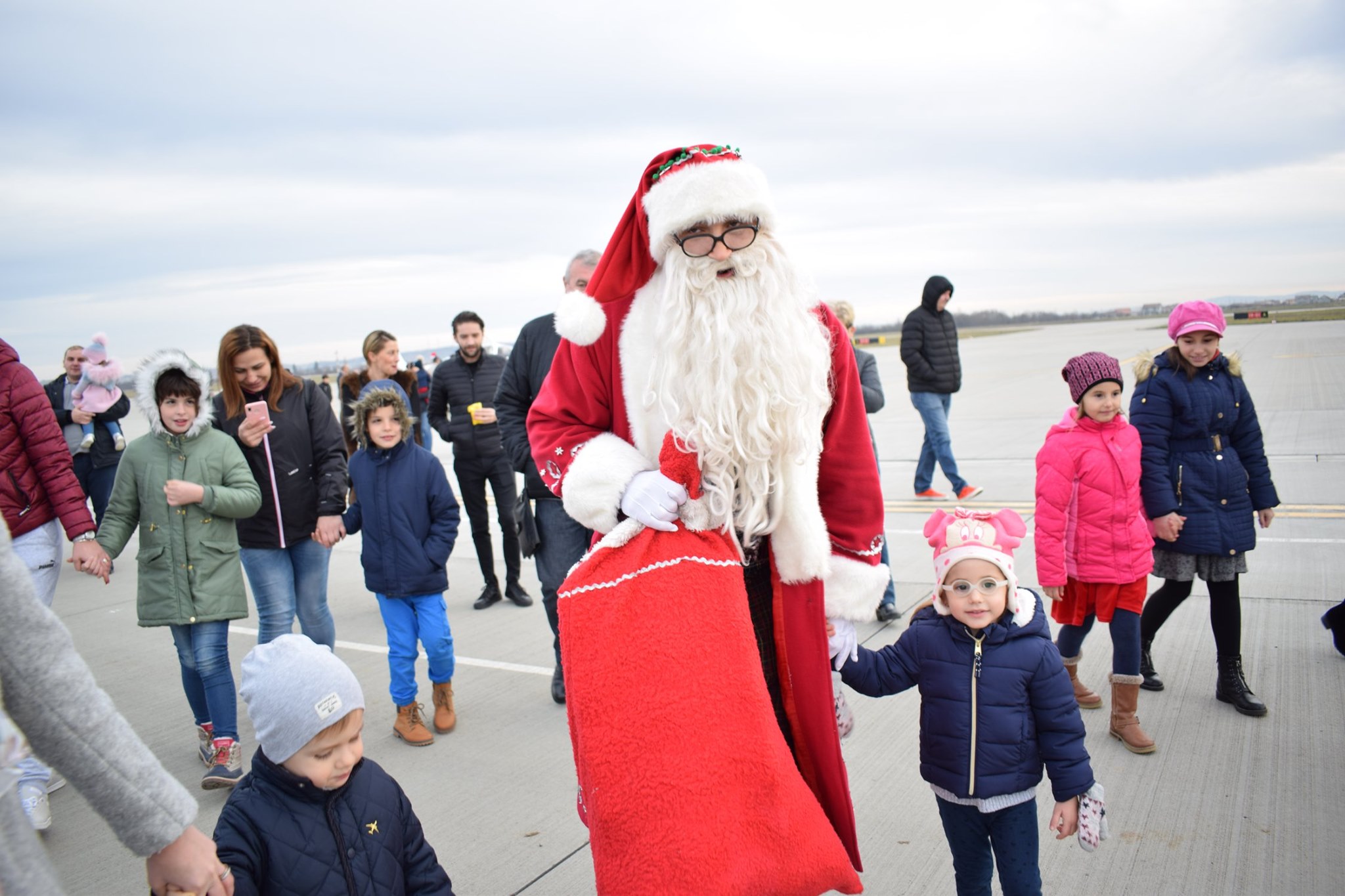 Devenită deja o tradiție, sosirea lui Moș Crăciun la Aeroportul Oradea a fost întâmpinată de copii cu multă bucurie. Aceștia au înconjurat avionul lui Moș Crăciun imediat ce acesta s-a oprit pe pista aeroportului.