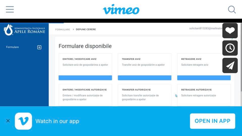 Pentru promovarea și execuția lucrărilor pe ape sau care au legătură cu apele și pentru punerea în funcțiune sau exploatarea acestor lucrări, utilizatorii sunt obligați să solicite emiterea avizului de gospodărire a apelor, respectiv autorizației de gospodărire a apelor. Pentru utilizatorii care dețin deja acte de reglementare în domeniul gospodăririi apelor, dar le-a expirat termenul de valabilitate, pot solicita online reînnoirea sau reactualizarea avizului sau autorizației. Printre beneficiile oferite de o platformă online amintim: reducerea timpului de așteptare, eliminarea pașilor birocratici precum și evitarea deplasării fizice la sediul instituției. În plus, o aplicație digitalizată conferă transparență instituțională, întrucât solicitantul poate urmări pas cu pas fiecare etapă de avizare/autorizare.