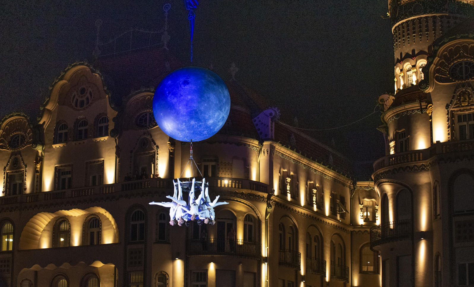 La finalul recitalului, centrul atenției s-a mutat imediat pe mijlocul platoului și pe zona așa numitului ansamblu Duiliu Marcu, din jurul statuii regelui Ferdinand, de unde s-au ridicat pe cerul nopții orădene balerinele îmbrăcate în alb. Asigurate în hamuri și carabiniere, suspendate de structuri rigide de oțel, dansatoarele au evadat din limitele suprafețelor plane și s-au desfășurat liber, cu cerul negru deasupra și frumoasele fațade din Piața Unirii, ca fundal.