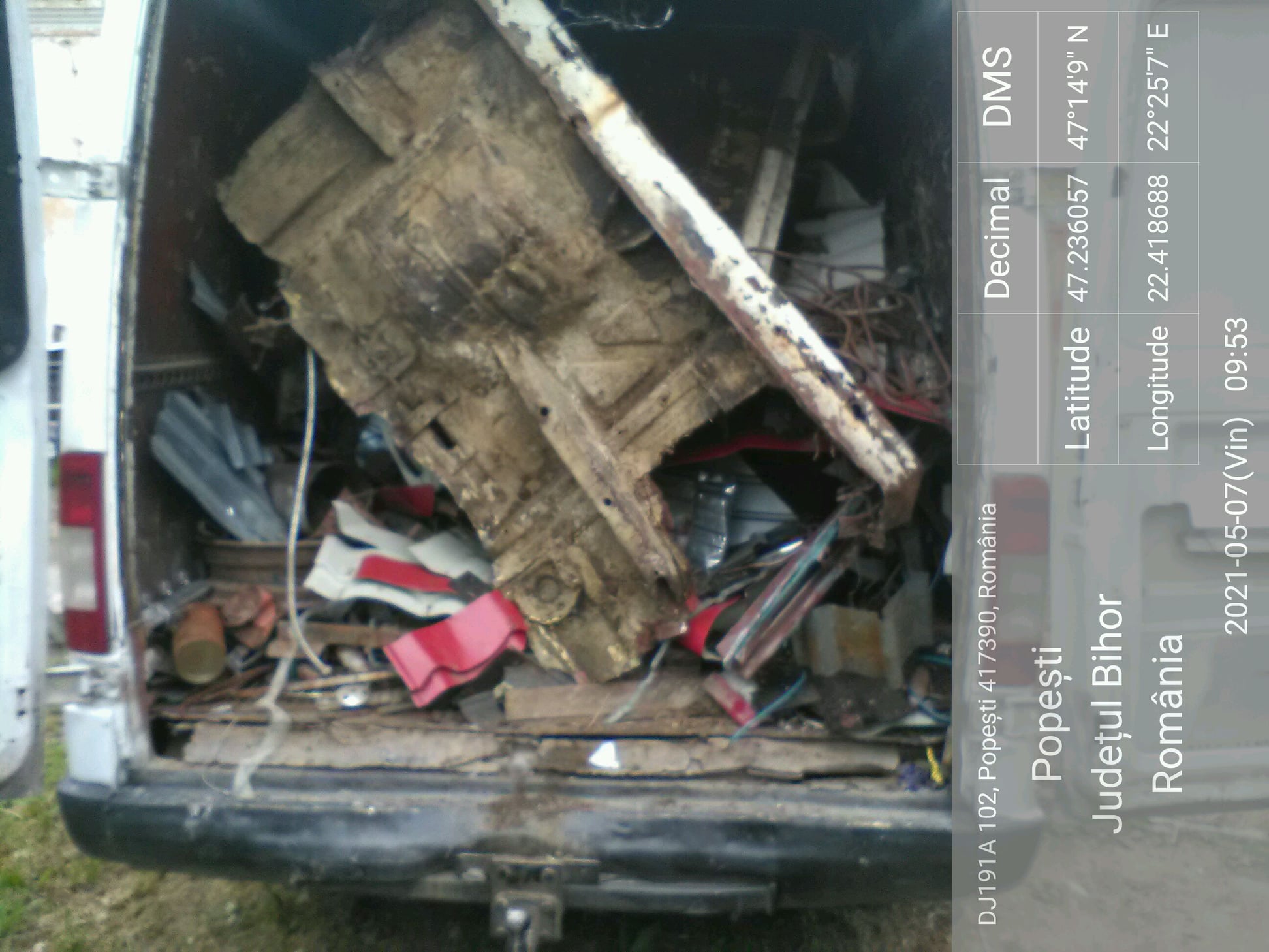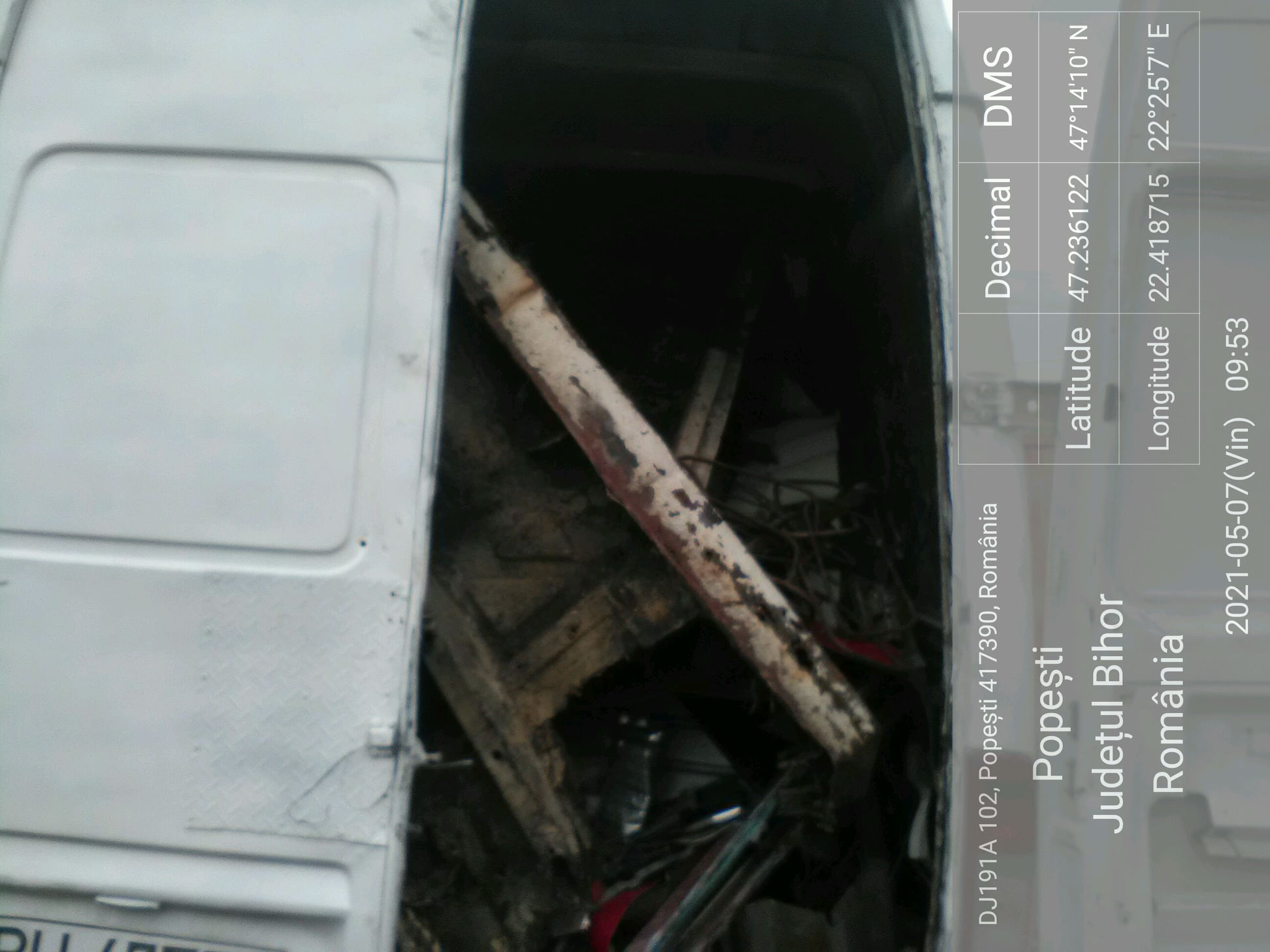 Colectarea deşeurilor feroase se efectua cu o autoutilitară, fiind identificate circa 600 kilograme de deşeuri feroase. Pentru această activitate, persoana fizică identificată nu deţine Autorizaţie de Mediu. Ca urmare a inspecţiei de mediu s-a stabilit ca măsură interzicerea desfăşurării activităţii de colectare a deşeurilor nepericuloase fără a deţine act de reglementare din punct de vedere al mediului.