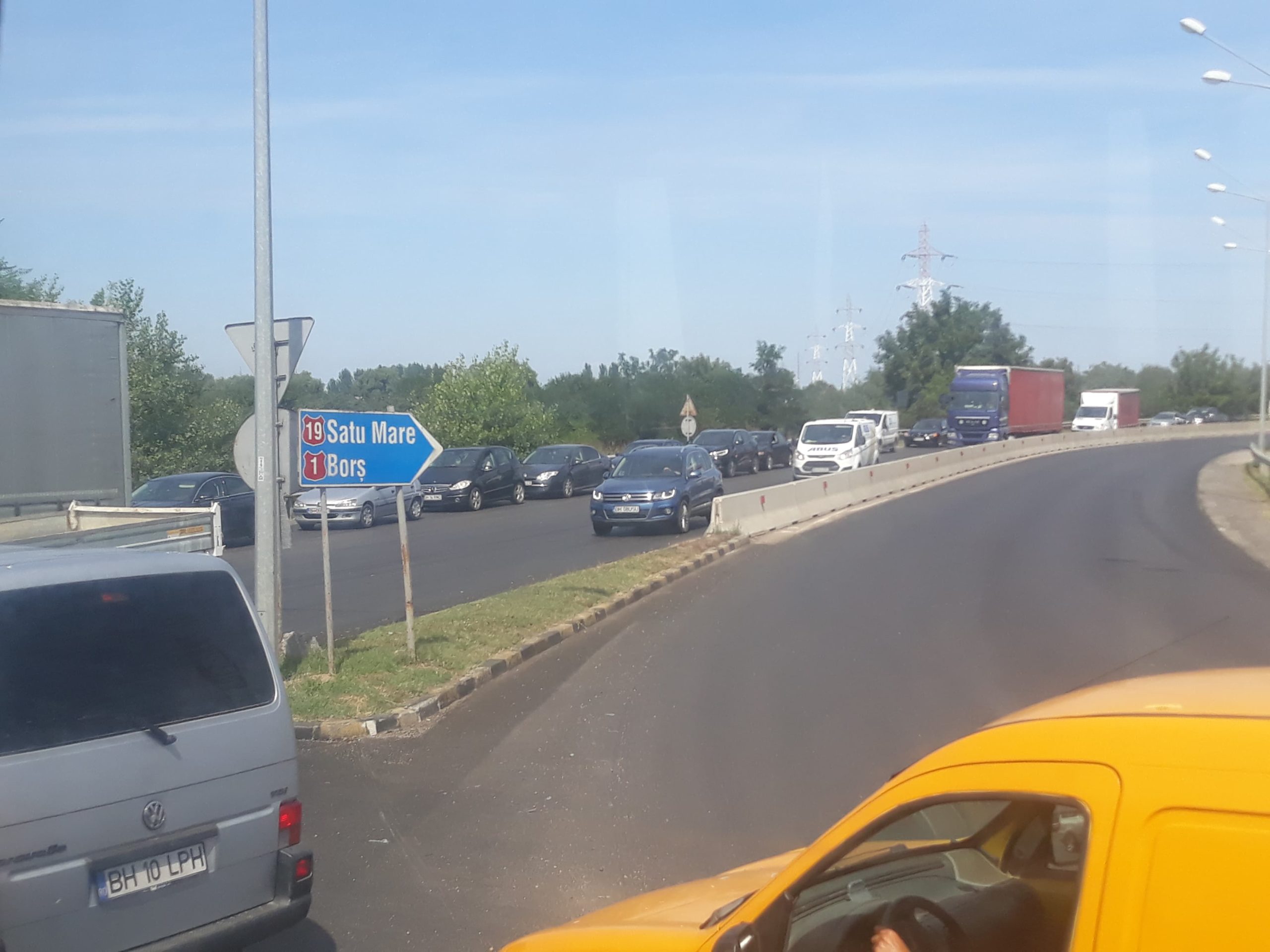 În zonă s-au format ambuteiaje și cozi întinse pe câțiva kilometri, o bandă fiind blocată de șoferii care doresc să treacă spre Sântandrei.