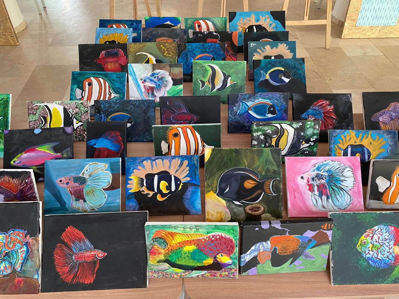 Lucrările expuse ilustrează parcursul artistic al tinerilor pictori, care au participat la programe de instruire cu durate variabile, între un an și cinci ani. Prin compoziții bine gândite, în care se regăsesc forme expresive și o paletă variată de culori – de la tonuri blânde precum albastru, violet, verde și galben, până la tonuri mai intense precum negru – copiii reușesc să redea o gamă largă de trăiri, de la liniște și echilibru, până la bucurie intensă și entuziasm.