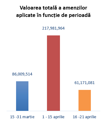 În perioada 1-15 aprilie valoarea totală a amenzilor a depășit de aproape patru ori valoarea amenzilor aplicate în perioada 15-31 martie.