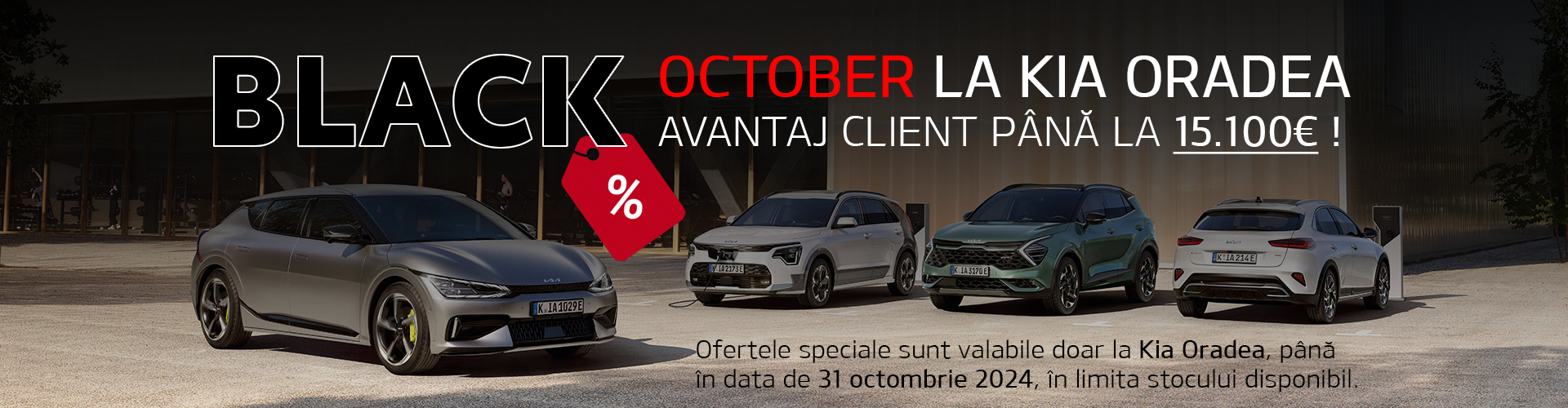 Fii pe fază! Luna octombrie a sosit cu cele mai mari reduceri la cele mai iubite modele KIA prin campania BLACK OCTOBER.