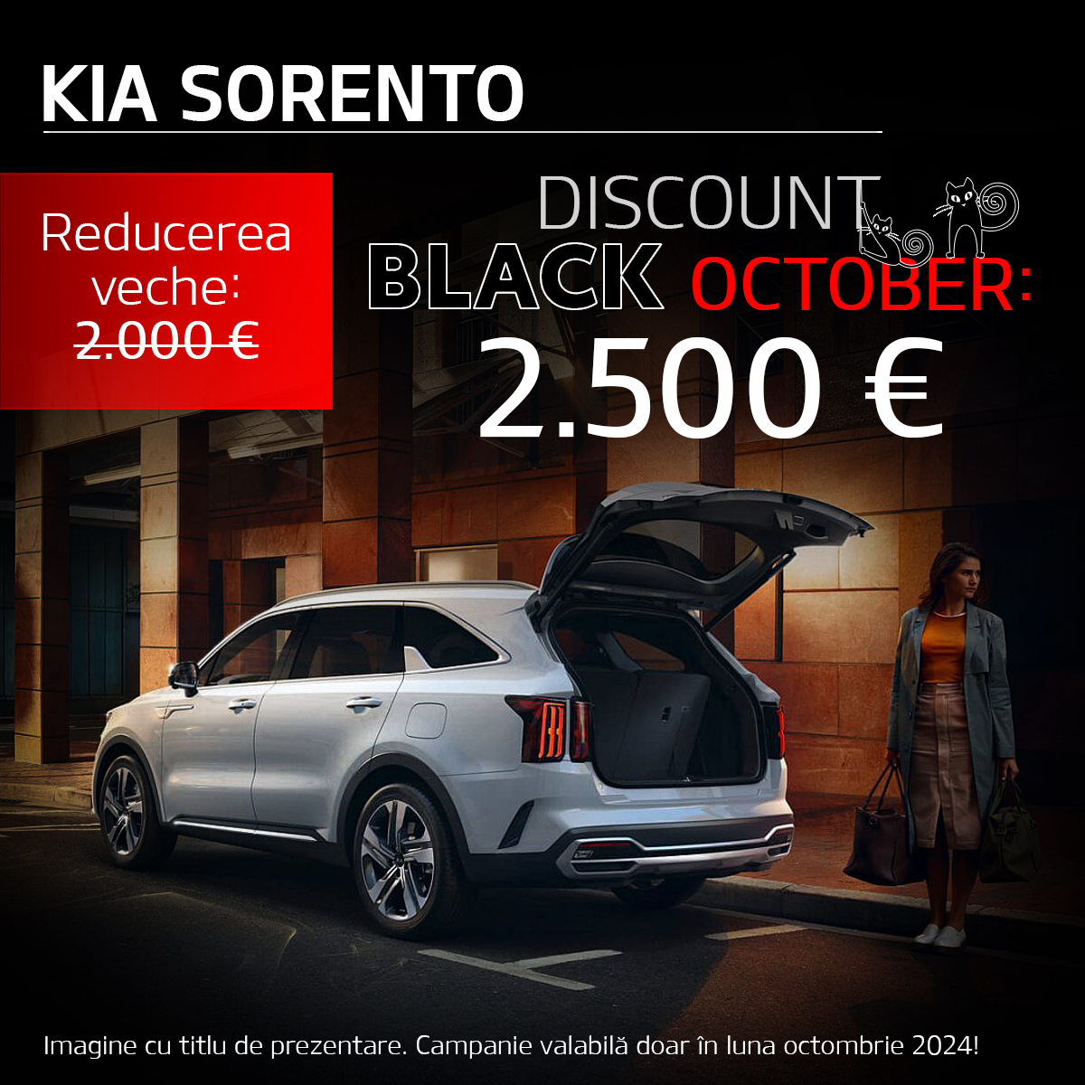 Fii pe fază! Luna octombrie a sosit cu cele mai mari reduceri la cele mai iubite modele KIA prin campania BLACK OCTOBER.