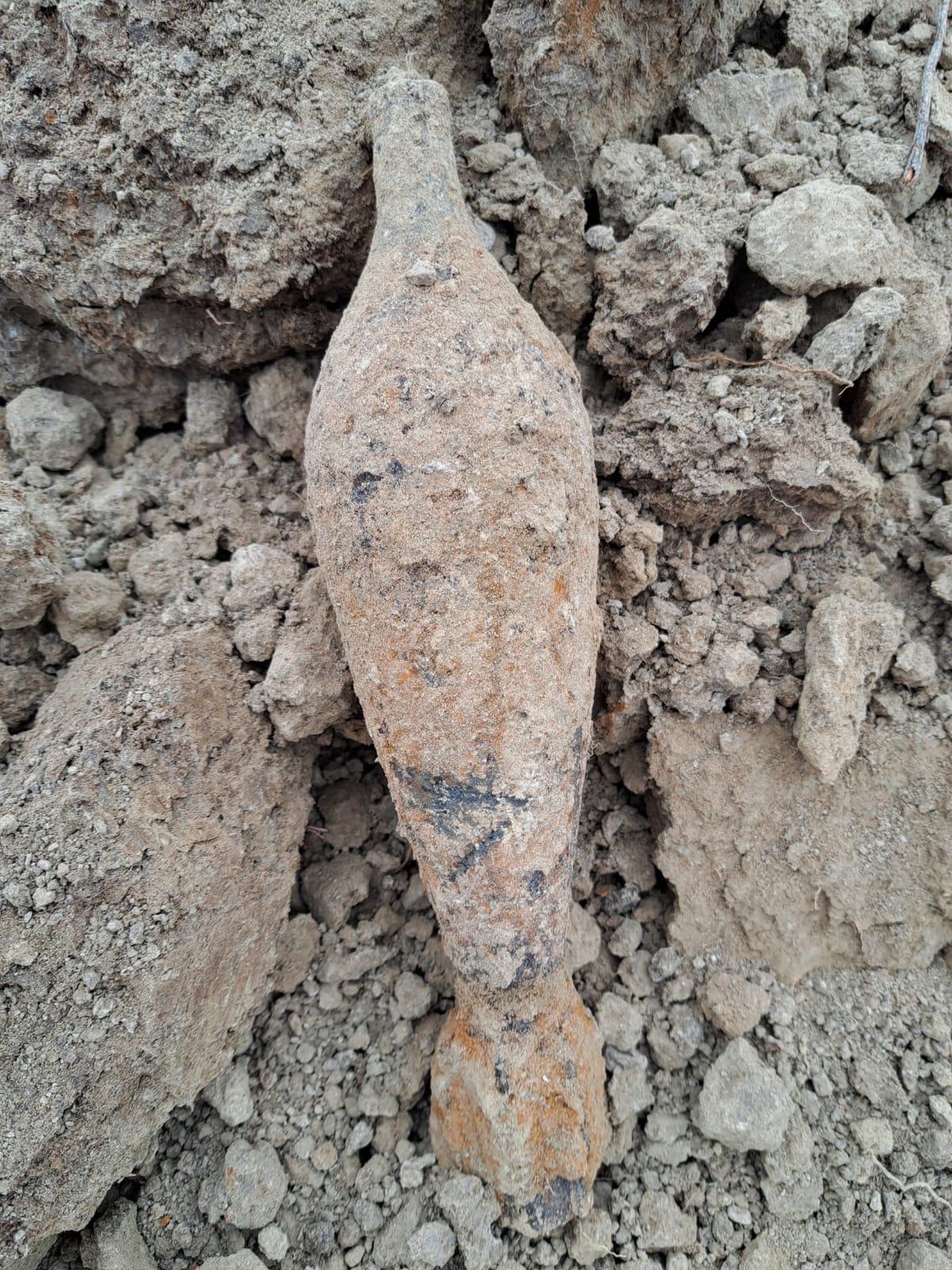 Potrivit pompierilor, muniția găsită este o bombă de artilerie de calibru 82 milimetri, provenită din cel de-al Doilea Război Mondial, echipajul pirotehnic a procedat la cercetarea zonei în vederea asanării altor potenţiale muniţii, după care a transportat şi depozitat bomba în condiţii de siguranţă.
