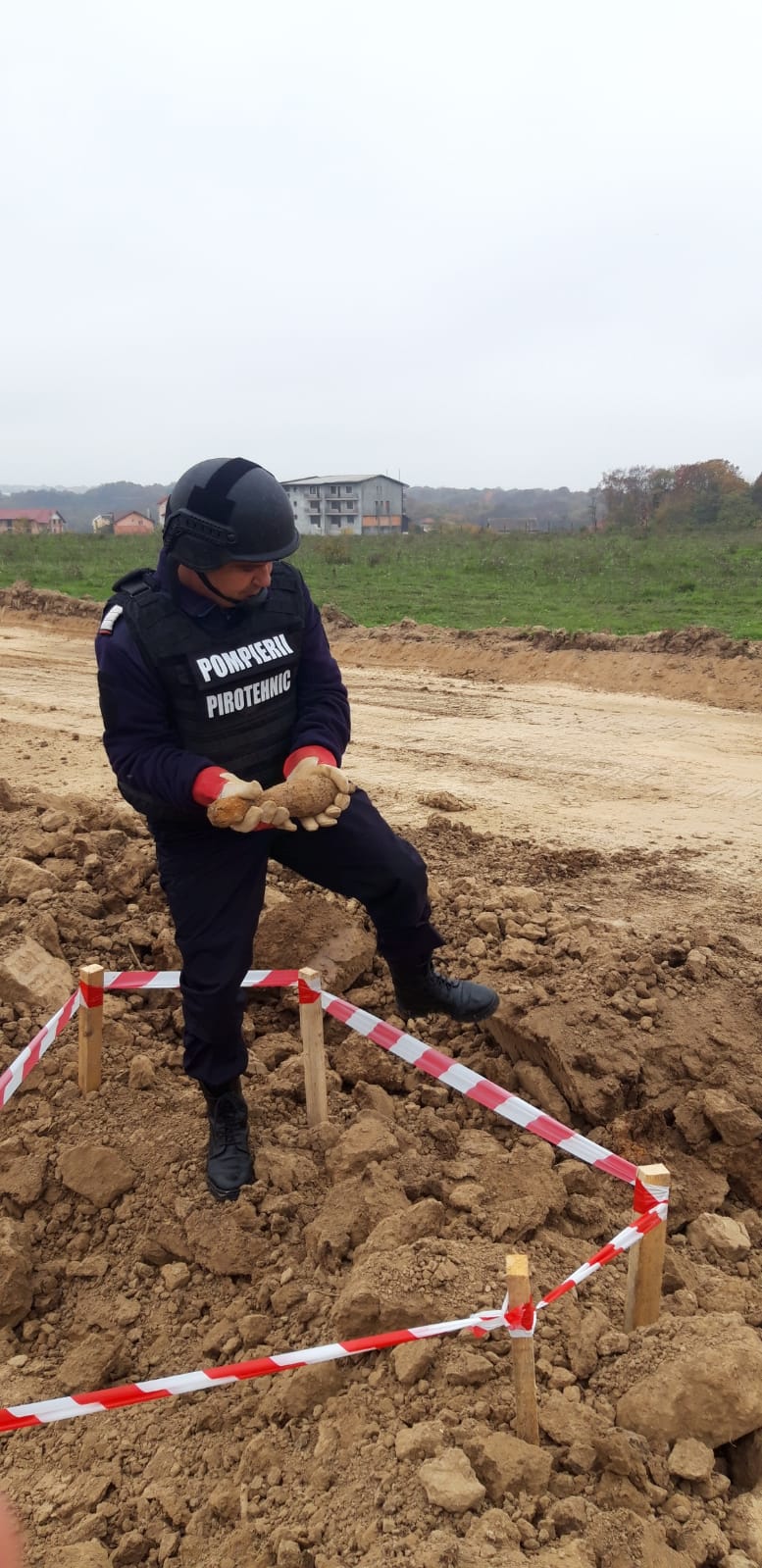 Sesizarea, primită în dispeceratul ISU Bihor prin Sistemul Unic 112, a fost făcută de un muncitor, care a descoperit muniția în timpul efectuării unor săpături pentru construirea unei șosele de centură.