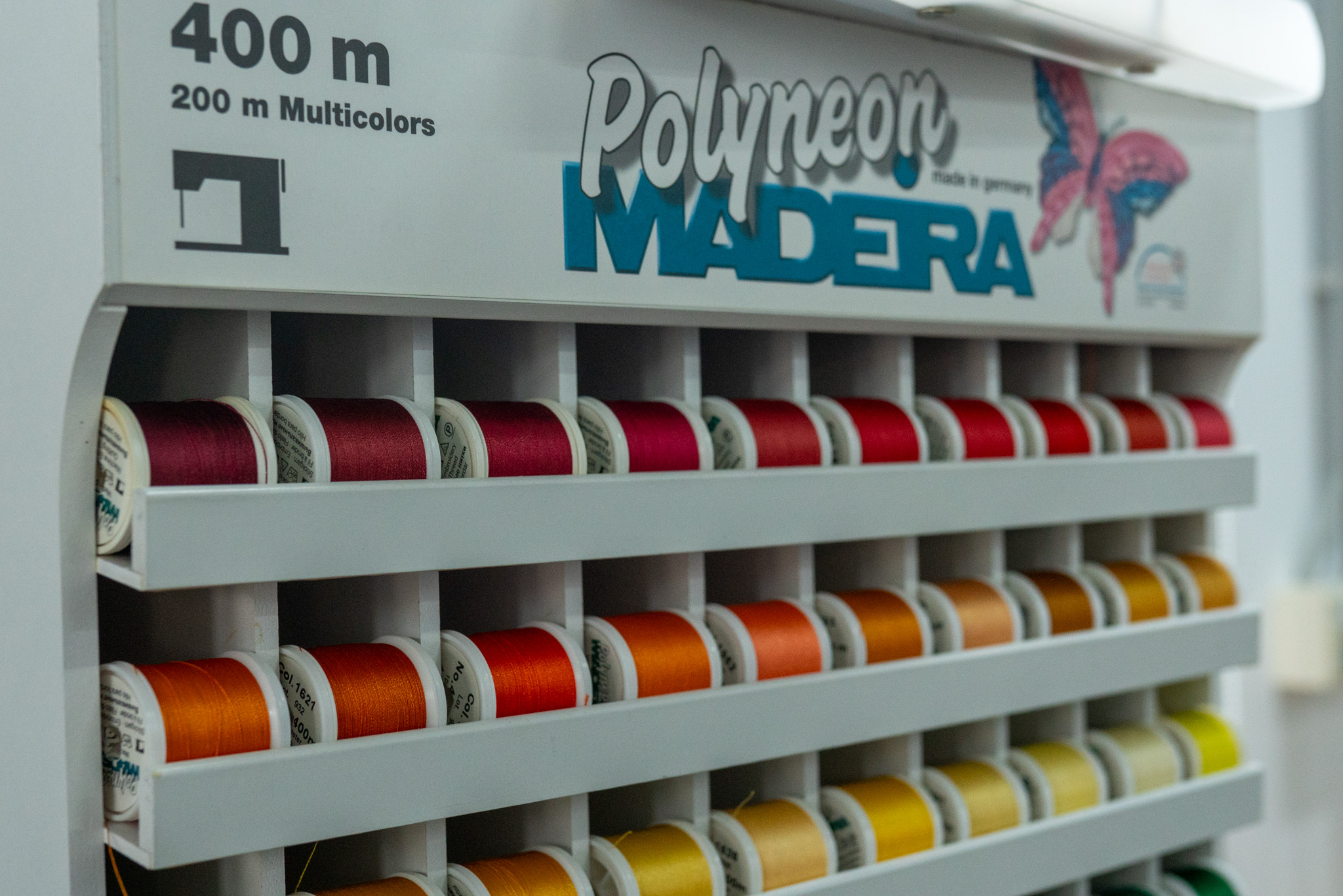 Calitatea în broderie nu vine doar din mașină sau soft, ci și din alegerea firelor. Pentru a susține nivelul de performanță al mașinii, folosim numai ață de brodat Madeira, fabricată în Germania. Este o alegere premium, recomandată la nivel internațional pentru broderii profesionale, datorită: