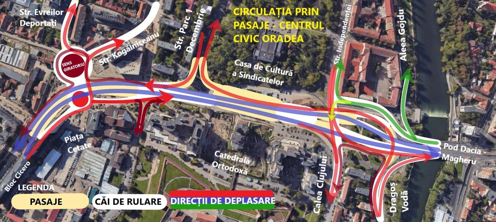 Cum se va circula în zona pasajelor din Centrul Civic al Oradiei