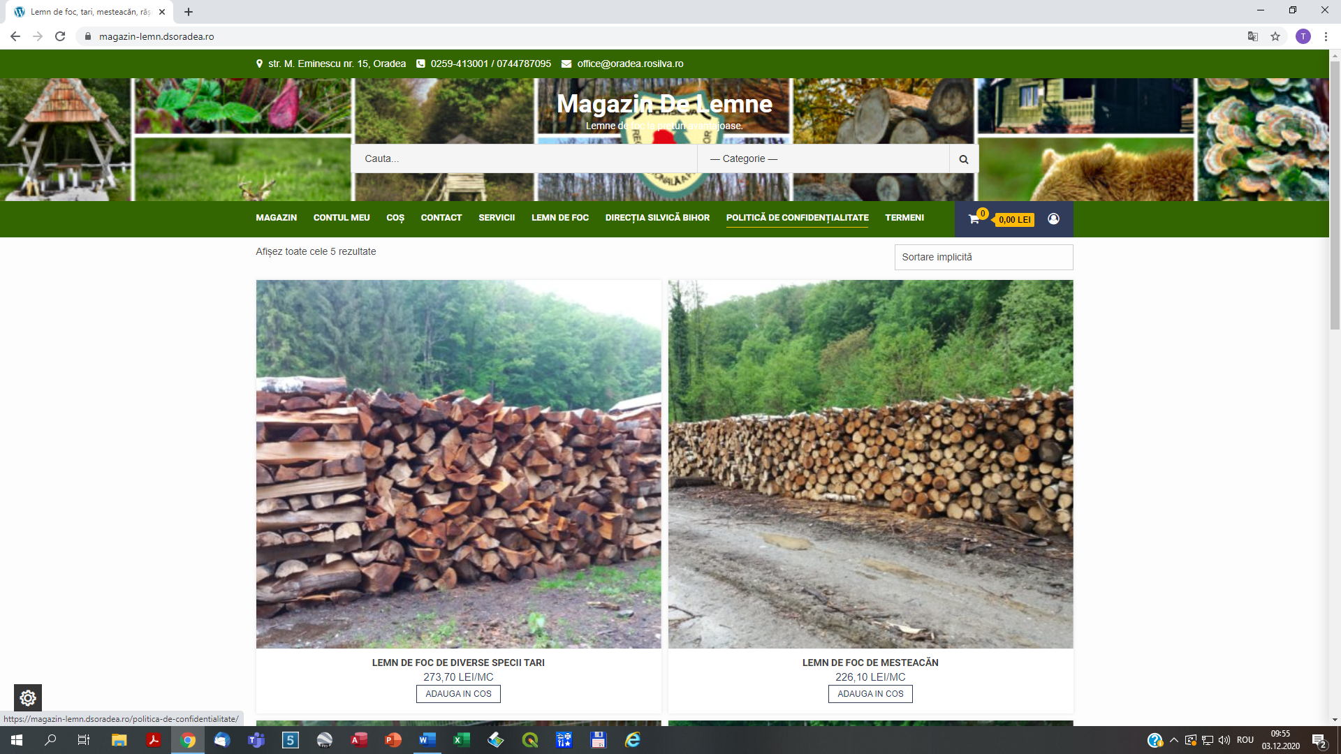 De asemenea, începând cu data de 3 decembrie Direcția Silvică Bihor a intrat pe piața comertului electronic de bunuri și servicii prin activarea magazinului online, https://magazin-lemn.dsoradea.ro/ pentru vânzarea lemnului de foc către cei interesați.