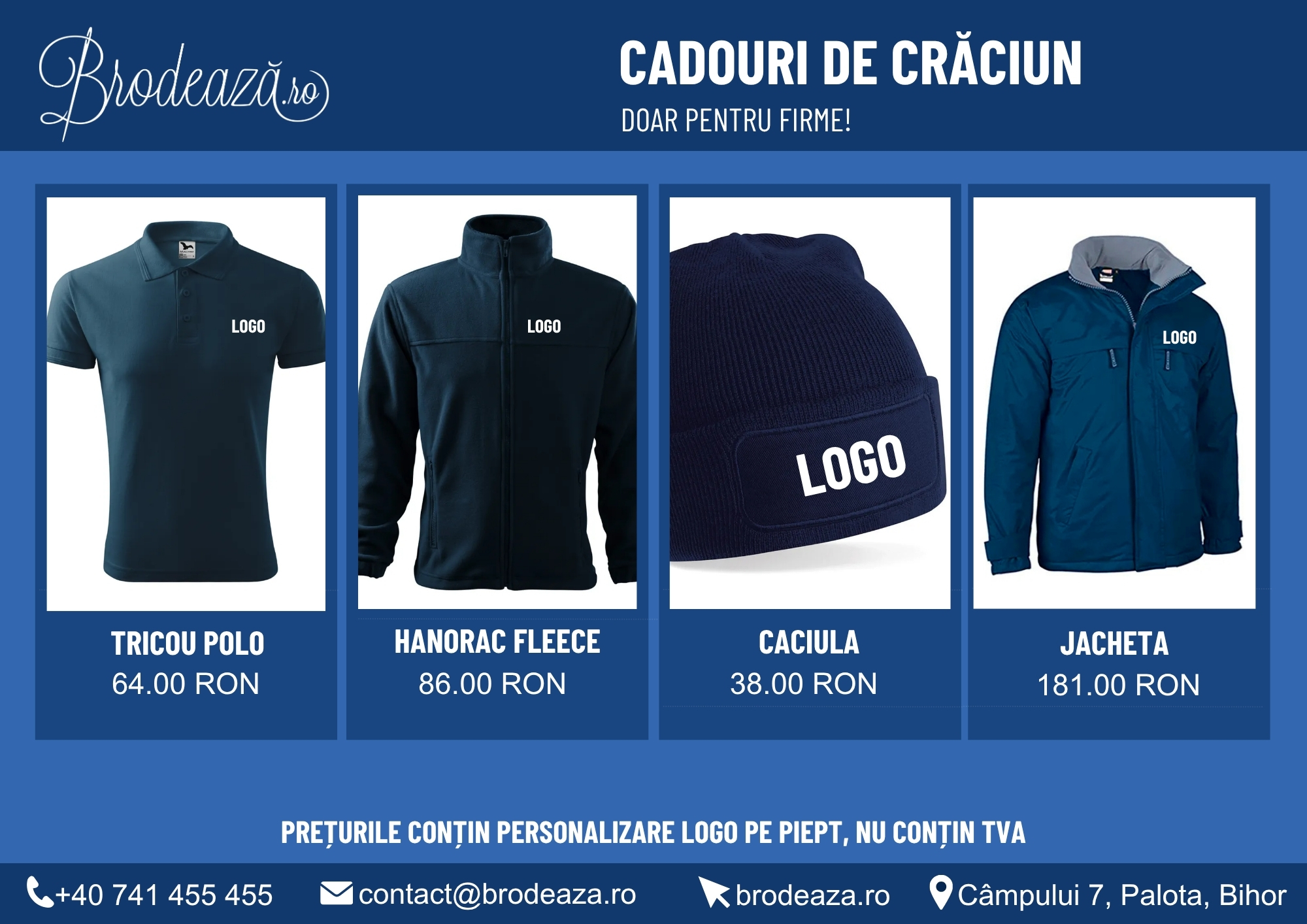 Mai multe detalii și oferte personalizate pentru companii pot fi găsite pe www.brodeaza.ro sau pe site-urile de socializare, Facebook, Instagram sau TikTok.