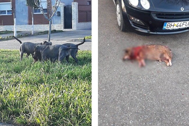 Câini Amstaff scăpați din curte au sfâșiat un câine scos la plimbare de stăpân. Amenzi de mii de lei