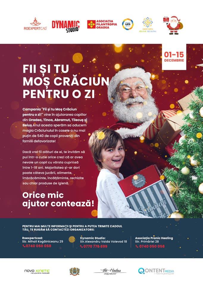 „Fii și tu Moș Crăciun pentru o zi!” este numele campaniei inițiate de Aura Joldoș, o generoasă mămică din Oradea care, de șapte ani, încearcă să aducă zâmbetul pe buzele copiilor cu care viața nu a fost foarte generoasă.