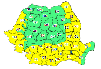 „În nord-vestul, centrul și local în sudul țării, precum și în zonele de munte vor fi perioade cu instabilitate atmosferică accentuată. Aceasta se va manifesta prin intensificări ale vântului și vijelii (cu viteze de peste 55…75 km/h), descărcări electrice, averse torențiale și izolat grindină. Cantităţile de apă vor depăşi 20…30 l/mp”, transmite ANM.