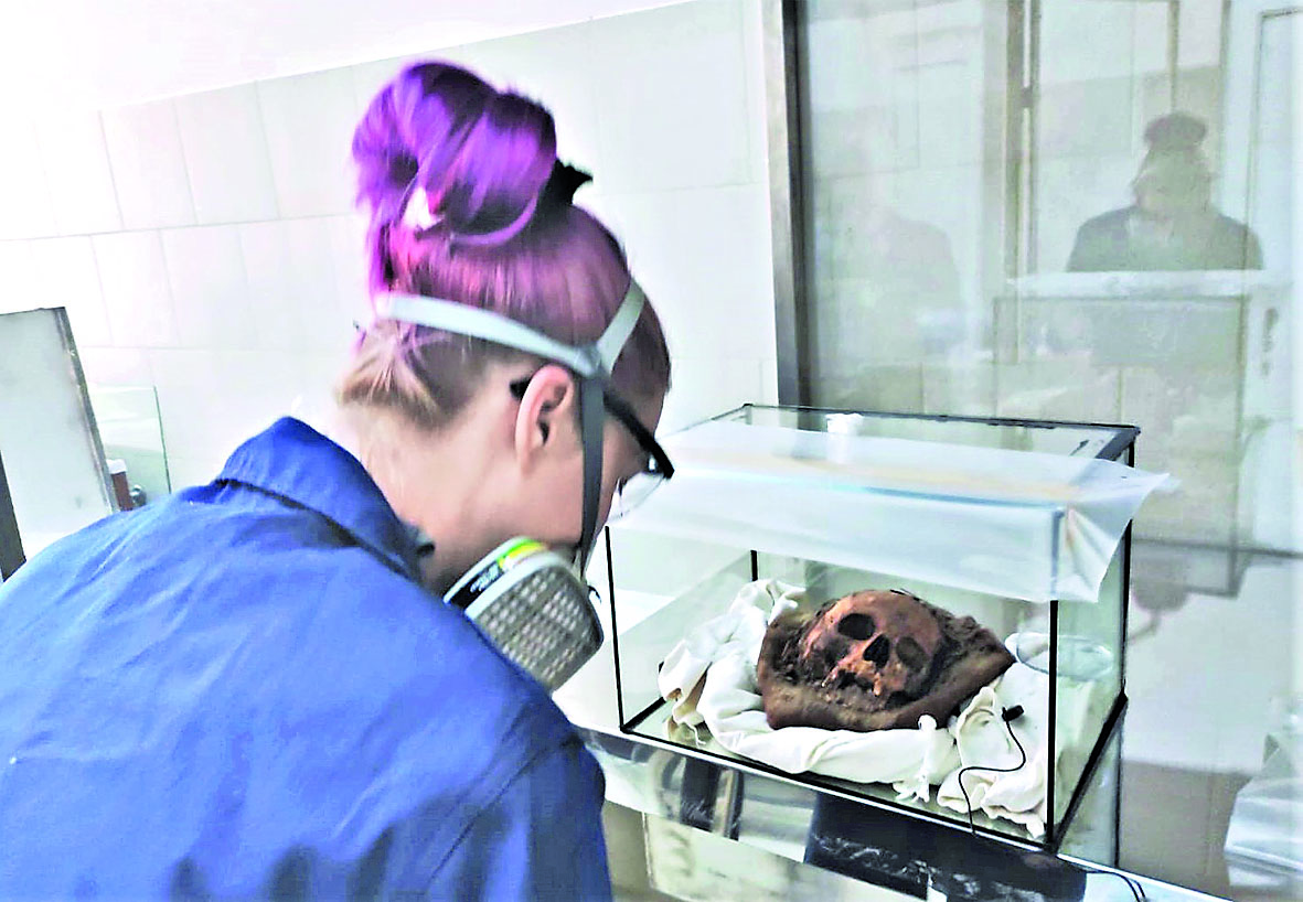 Iniţial Iacob a fost pus într-un mediu pentru hidratare, până când pălăria a putut fi detaşată de craniu. Interesant a fost că în momentul în care a fost desprins cu grijă craniul, calota era descompusă, dar baza pălăriei era intactă. Chiar şi părul era într-o stare foarte bună. „Incredibil cum a putut să reziste mai bine partea textilă decât osul. Trebuie să facem investigaţii să vedem care a fost procesul care a dus la această degradare. E neobişnuit. Nu ştim cum îl chema pe om, dar noi l-am botezat Iacob şi are numărul provizoriu piesa 100”, precizează Carina Stanciu.