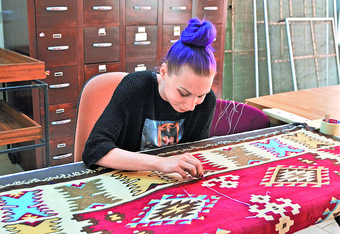 Ca proceduri specifice de restaurare, la un covor de exemplu cu lacune, trebuie respectată tehnica în care acesta a fost lucrat iniţial. Depinde cât de mare este lacuna, cât de complicată. Restauratarea se ocupă acum în laborator de un covor lucrat în tehnica chilim. Contează foarte mult calitatea materialelor care se folosesc la restaurare, lucru care este o mare problemă, spune Carina, pentru că se găsesc foarte greu materiale potrivite pentru restaurare, la care să corespundă fineţea firului, nuanţa cu trei tonuri mai deschisă. În plus sunt şi scumpe, mai ales cele de calitate superioară.