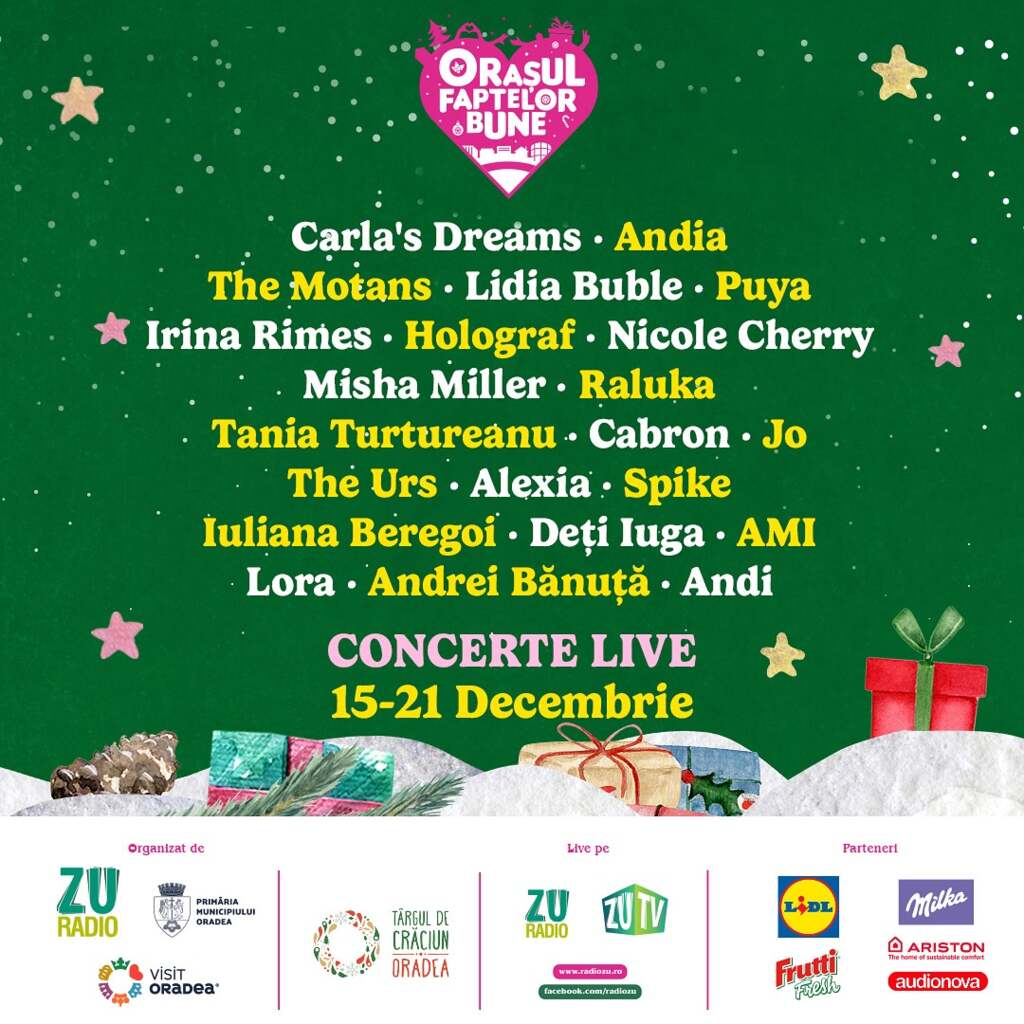 „E oficial! Ei sunt artiștii care vin să cânte în inima Târgului de Crăciun din Oradea, pentru inimile cetățenilor din Orașul Faptelor Bune”, au transmis cei de la Radio ZU.