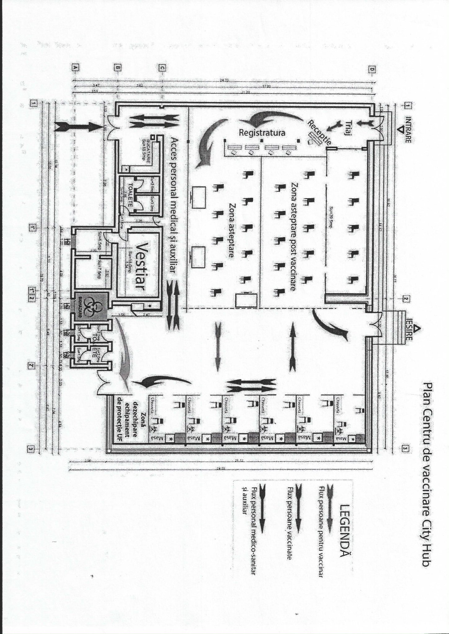 Centrul de vaccinare trebuie să aibă o zonă de triaj/recepție, o zonă de așteptare, una de vaccinare și una de așteptare postvaccin.