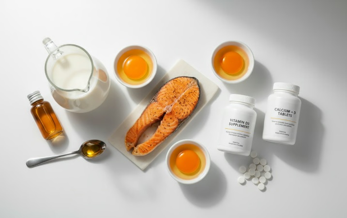 Alimentele precum uleiul de pește, gălbenușul de ou și peștele gras (somon, macrou) sunt surse importante de vitamina D. Lipsa acestora din alimentație poate duce la carențe semnificative. - Probleme de absorbție sau malabsorbție