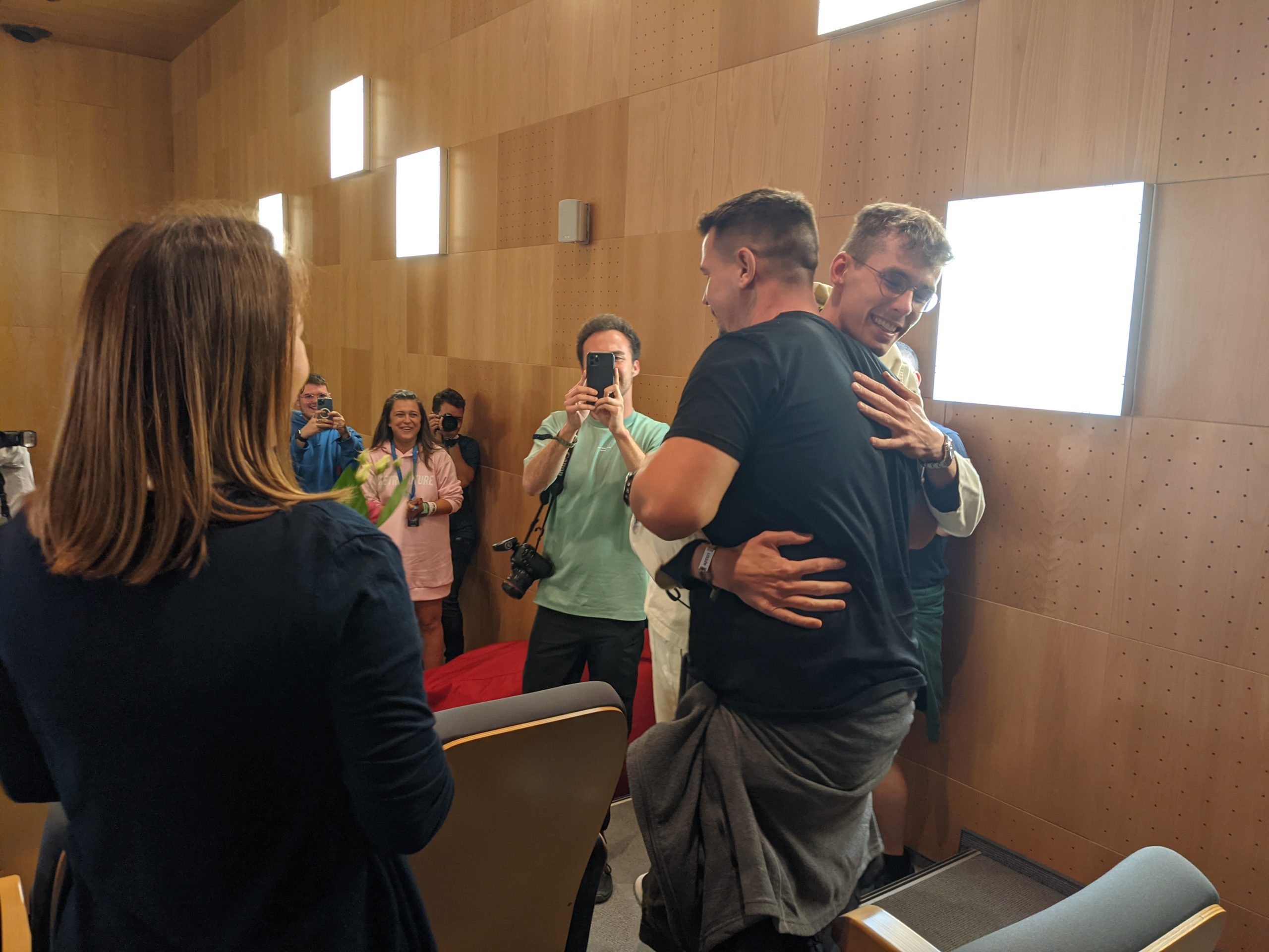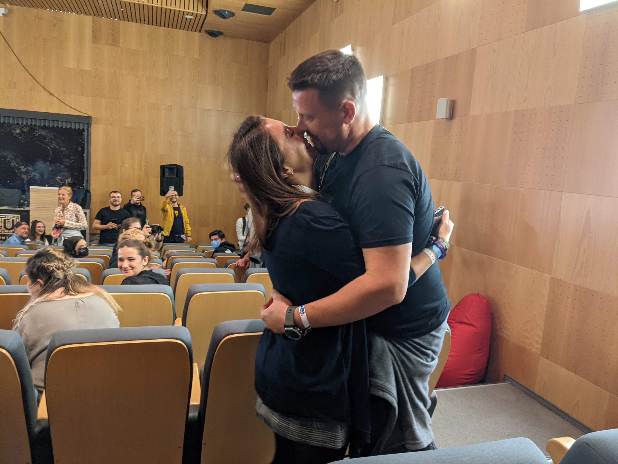 Vizibil emoționată, aceasta a acceptat în aplauzele participanților. Lost Frequencies i-a felicitat pe viitorii miri și le-a dăruit un buchet de flori.
