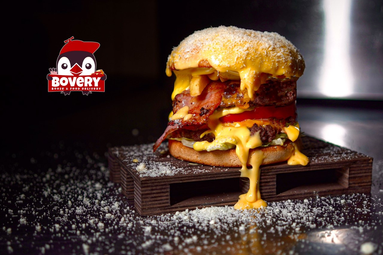 Ingrediente: 2 x carne de vită sau porc, salată iceberg, 2 x brânză cheddar, roșii, castraveți murați, ceapă roșie caramelizată, 2 x bacon afumat, sos Bovery, sos bbq, cartofi prăjiți și sos cheddar cu parmezan pe burger! [eadvert] 46 lei simplu, 51 la meniu cu suc și cartofi pai/wedges. ————— Amatorii de burgeri din Oradea … Continue reading Cheesanity Burger, al 15-lea burger, care întărește flota de burgeri de la Bovery – probabil cei mai buni burgeri din Oradea!