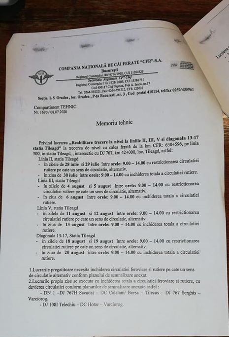 „Deoarce vor fi lucrari la calea ferata, care sunt independente de Primaria Tileagd va instiintam urmatoarele: bariera va fi inchisa in unele zile care vor fi anuntate (cu ora inchiderii si ora deschiderii). Va punem la dispozitie o harta cu ruta ocolitoare”, este mesajul postat de pagina de Facebook a Primăriei Tileagd.