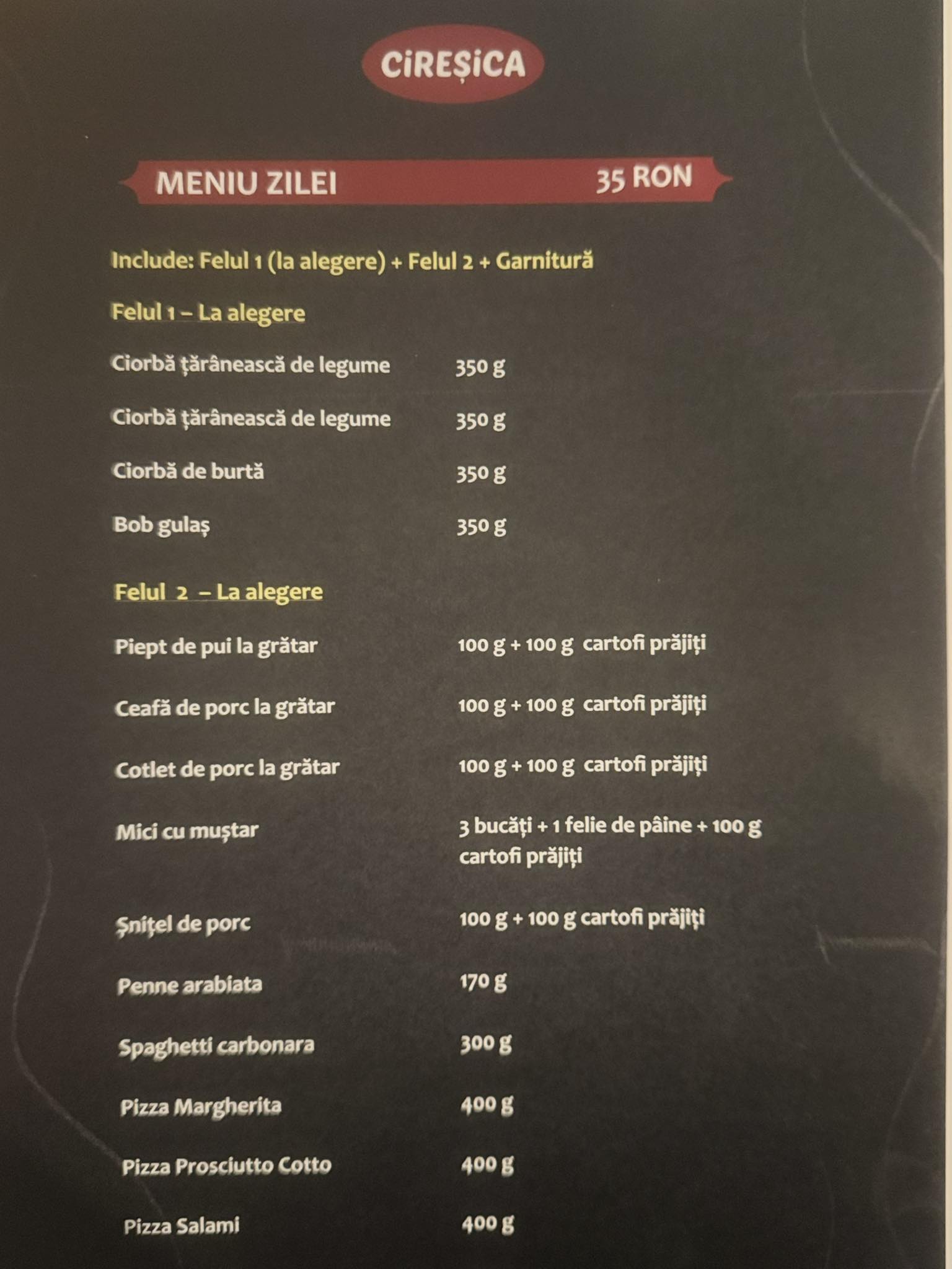 Meniul Zilei îl găsiți mai jos în poză – se poate alege din câteva preparate, atât la felul 1, cât și la felul 2!