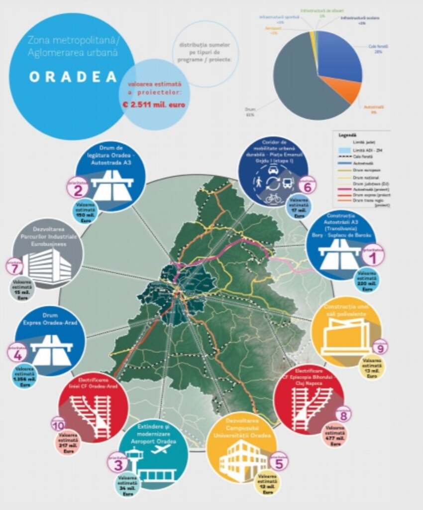 În anexa analizei publicată de Banca Mondială, orașul Oradea apare ca Zonă metropolitană / Aglomerare urbană. În același raport, sunt trecute investițiile majore din Oradea, atât ca și cost, cât și ca grad de prioritate.