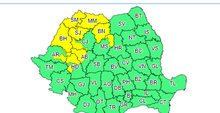 Potrivit avertizării, va ploua în cantități importante în regiuni din județele Mureș, Bistrița-Năsăud, Sălaj, Cluj, Maramureș, Arad, Bihor, Satu Mare, Hunedoara și Alba