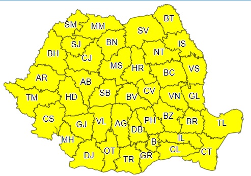 „În Banat, Crișana, Maramureș, Transilvania, în Moldova și în zona montană a Olteniei și Munteniei vor fi perioade cu averse torențiale și se vor acumula cantități de apă de peste 40 l/mp și pe arii restrânse 50…80 l/mp. Vor fi și intensificări ale vântului, vijelii, descărcări electrice și grindină”, se arată în informarea ANM.