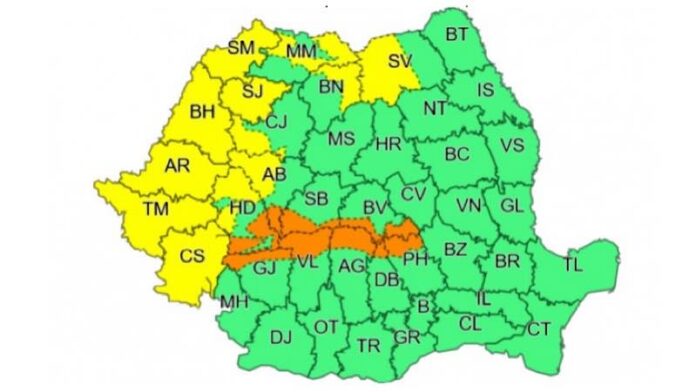 Avertizarea meteorologică este valabilă de luni, 28 decembrie de la ora 18:00 și până marți, 29 decembrie, la ora 10:00.