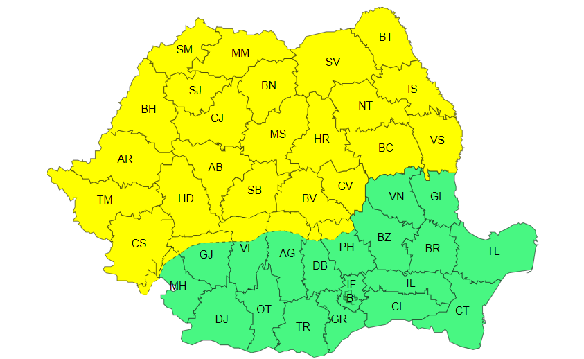 Intervalul în care va fi valabil avertizarea este între orele 12:00 – 23:00.