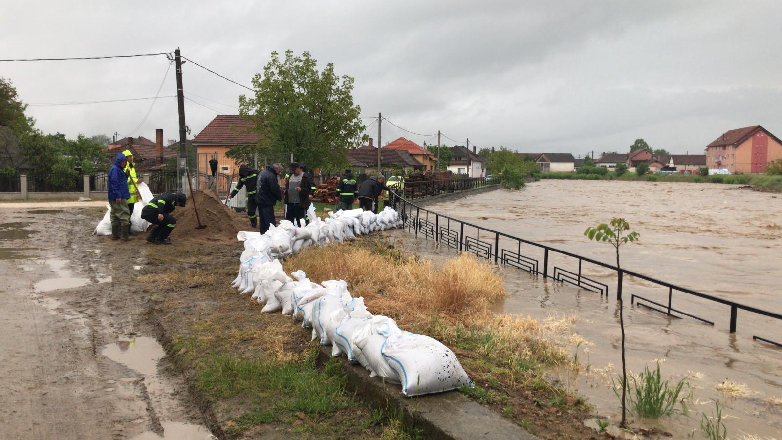 „În Beiuș pompierii militari acționează pentru realizarea de diguri din saci de nisip, pe străzile Biruinței și Pescarilor, pentru protejarea locuințelor”, a mai transmis maiorul Roșca.