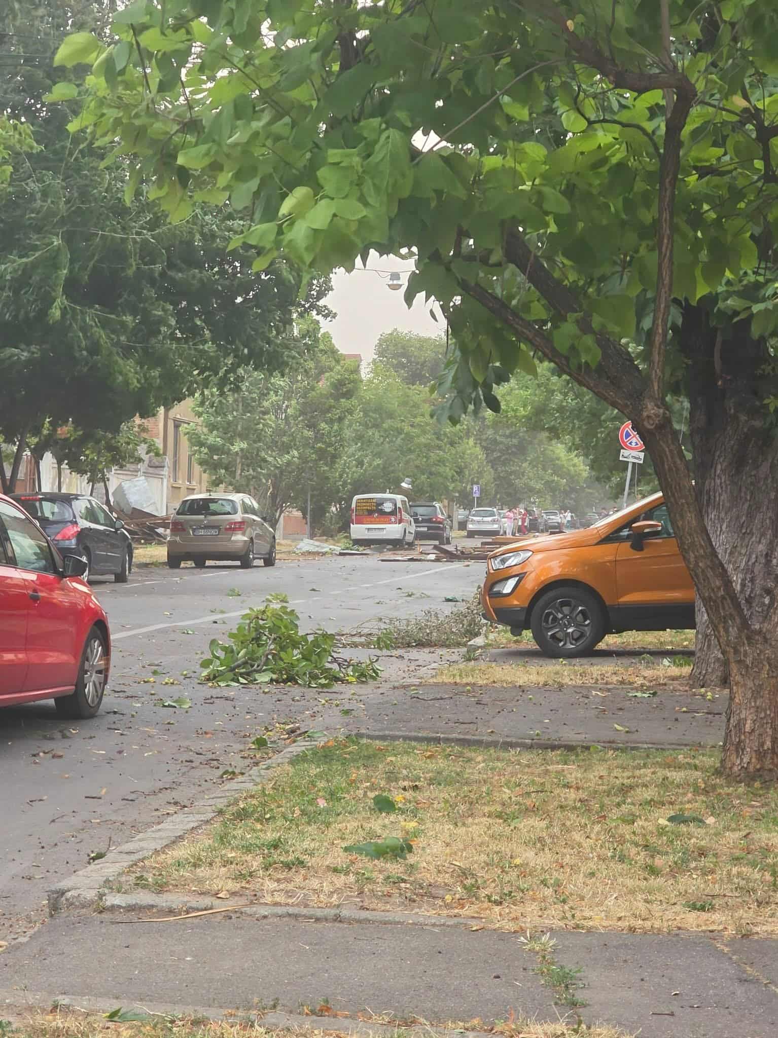 În municipiul Oradea, vijelia a început în jurul orei 17:30, iar efectele nu au întârziat să apară. Pe strada Nicolae Jiga, un acoperiș a fost smuls de rafalele puternice de vânt.
