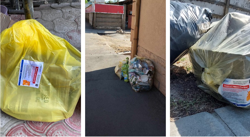 Conform procedurii de lucru, autocolantele cu „Deșeuri neconforme sunt lipite de operatorul de salubrizare pentru a marca sacii cu deșeurile care nu respectă regulile colectării separate, după introducerea fracțiilor noi. Autocolante similare au fost folosite anterior lunii iulie, pentru a marca sacii negri în care se depozitau deșeurile în ziua de colectare a deșeurilor reciclabile.