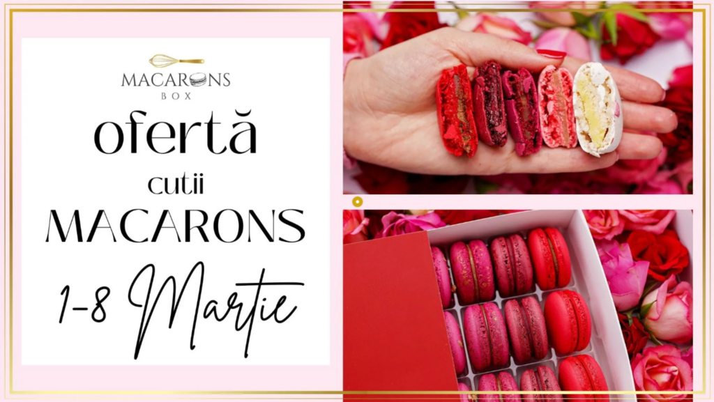 Nu mai stați pe gânduri și grăbiți-vă la Macarons Box Oradea, pe Primăriei nr 34, unde găsiți noua colecție de 8 martie! Sau pe https://macaronsbox.ro/oferta-8-martie/