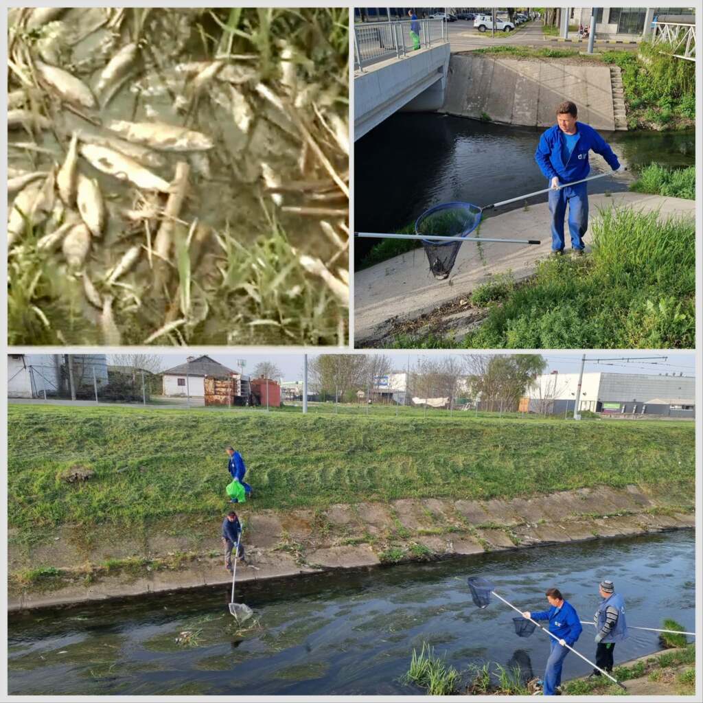 Angajații Apele Române Crișuri au intervenit prompt, recoltând din apă 150 de kilograme de pești morți, care au fost predați spre incinerare unei firme specializate în gestionarea deșeurilor.