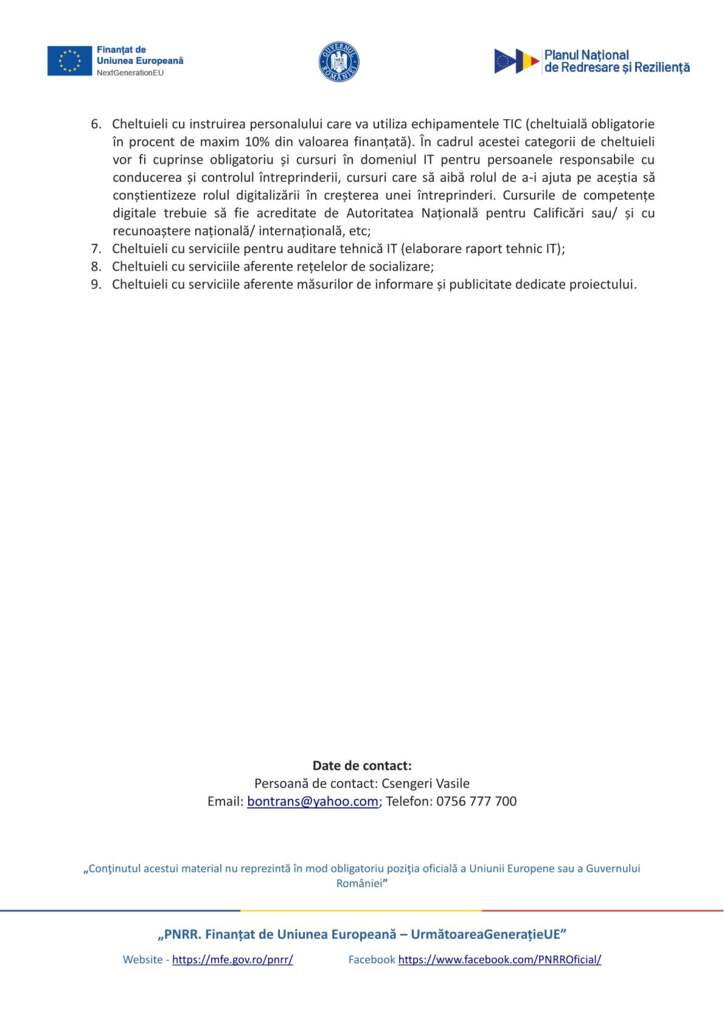 Titlu apel: PNRR/2022/C9/MIPE/I3/DIGITALIZAREA IMM-URILOR – GRANT DE PÂNĂ LA 100.000 EURO PE ÎNTREPRINDERE CARE SĂ SPRIJINE IMM-URILE ÎN ADOPTAREA TEHNOLOGIILOR DIGITALE