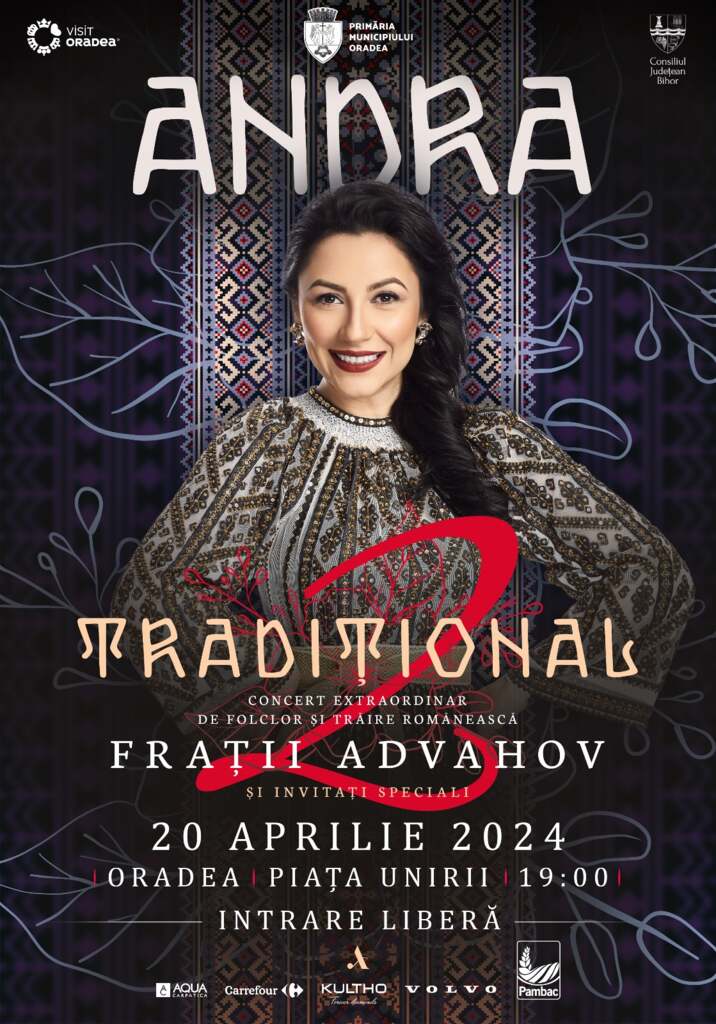 Cu această ocazie, Visit Oradea în colaborare cu Primăria Municipiului Oradea, Consiliul Județean Bihor și Agenția de Management al Destinației Bihor, aduc un spectacol de excepție în Piața Unirii din Oradea: „Tradițional 2”, susținut de Andra, cea mai iubită artistă din România.