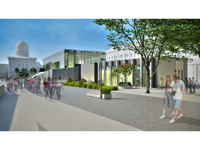 „Proiectul constă în amenajarea zonei publice situate deasupra parcării subterane din str. Independenței, pe amplasamentul delimitat de str. Independenței, malul Crișului Repede, Sinagoga Sion și Podul Sf. Ladislau. Elementul principal al amenajării îl reprezintă corpul de clădire care va găzdui galeria de artă și un spațiu expozițional, care va putea fi folosit de către artiștii plastici. Acesta are regim de înălțime parter+etaj, prevăzut cu pereți cu gradene de apă și oglindă de apă perimetral. Mobilierul urban va fi reprezentat prin bănci de granit cu jardiniere și stâlpi de iluminat cu panouri fotovoltaice. De la nivelul spațiului suprateran se va putea coborî pe trepte până pe malul Crișului. Proiectul prevede și mutarea statuii lui Mihai Eminescu mai aproape de malul Crișului, dar și amenajarea unei cafenele”, informează Primăria, prin comunicat de presă.
