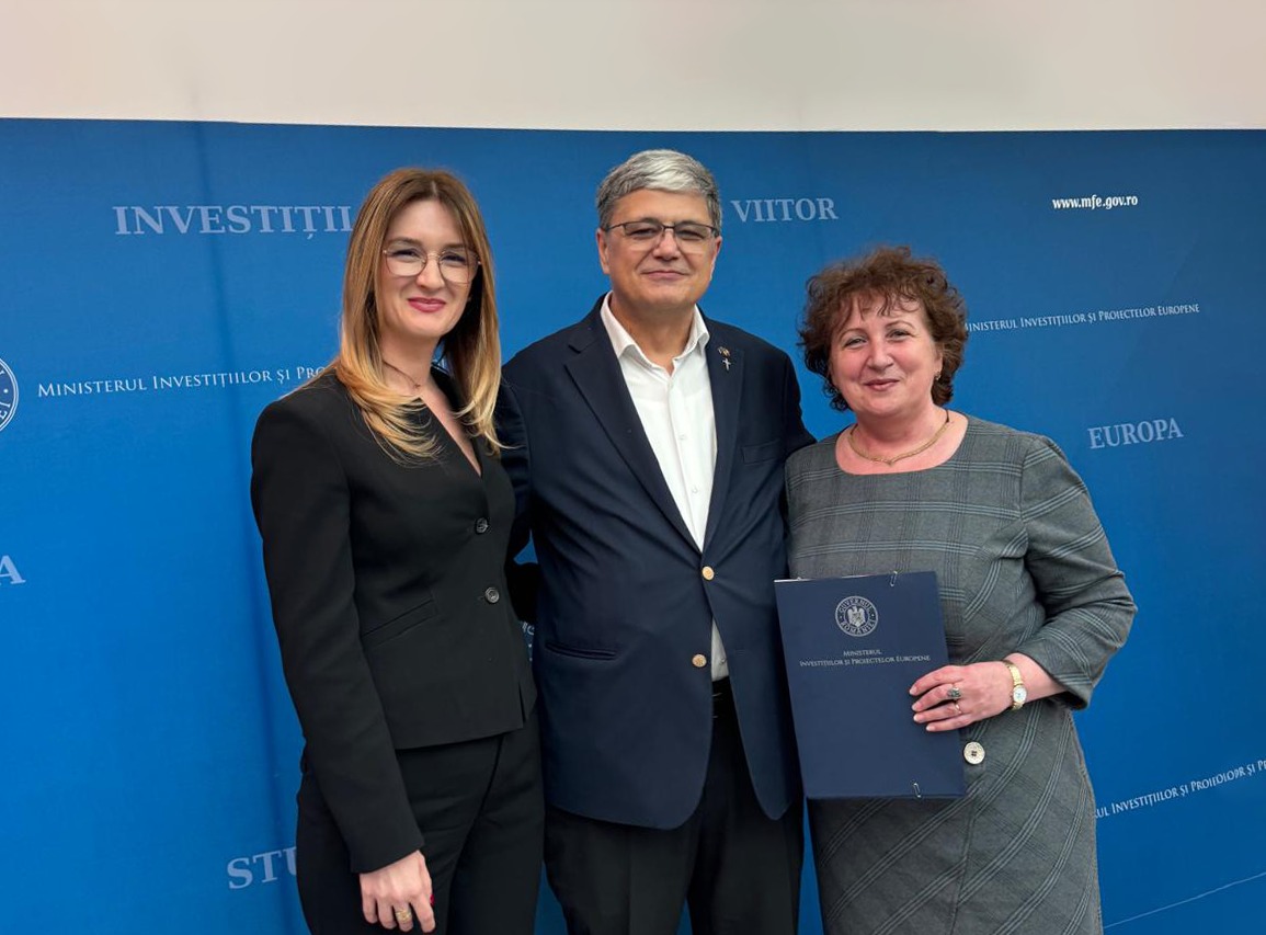 La semnarea contractului de finanțare pentru spitalul din Oradea au participat ministrul Marcel Boloș, Lucia Daina, director medical al Spitalului Clinic Județean de Urgență Bihor, și Ioana Popa, șef serviciu în cadrul Direcției Management Proiecte cu Finanțare Internațională din Primăria Oradea.