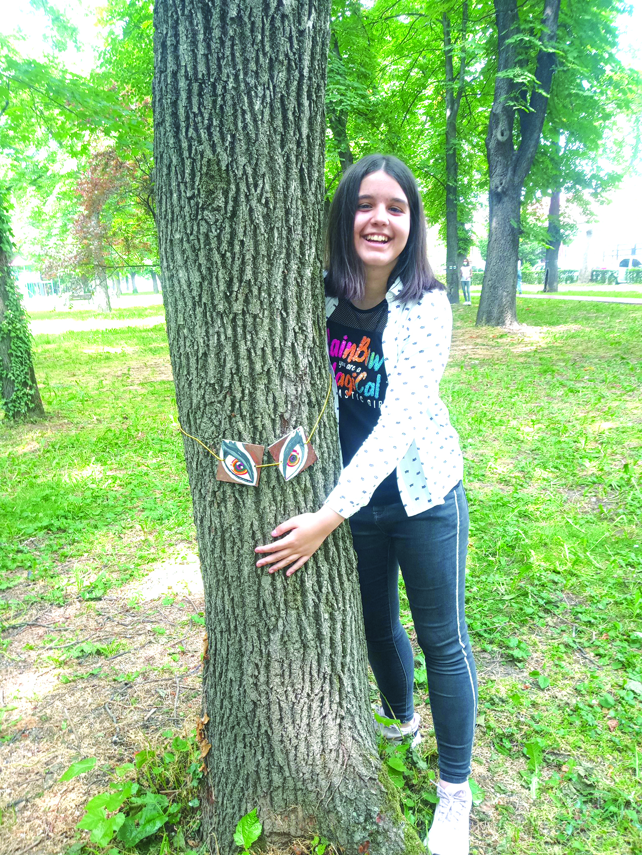 “Când privim natura ar trebui să ne conectăm cu ea. Să ne regăsim în fiecare copac, în fiecare floare”. Natura trăiește, are suflet și are mare nevoie să fie respectată, iubită și protejată. Este mesajul puternic pe care a vrut să-l transmită eleva Școlii Gimnaziale nr 16 Oradea, Ana Jarca, din clasa a VII- a A într-un mod inedit. “Anei i s-au alăturat în aceasta perioada peste 500 de colegi din școala noastră și din alte școli, după ce elevii au pictat, pe bucăți de lemn, sute de perechi de ochi și le-au atașat arborilor din oraș.