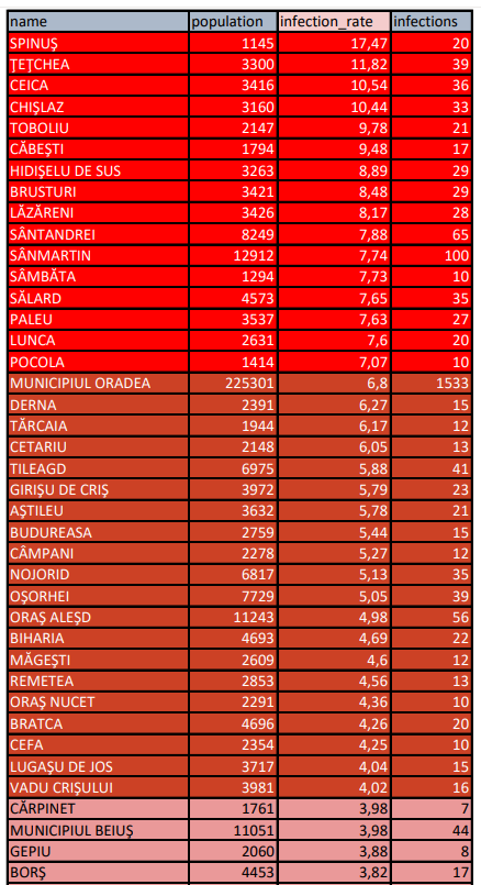 În 15 localități bihorene urmează să fie aplicate restricții de circulație în fiecare zi, deoarece incidența a depășit pragul 7,5 la mia de locuitori. Oradea și alte patru localități, care o incidență între 6 și 7,5 la mia de locuitori vor avea restricții de circulație doar în weekend.