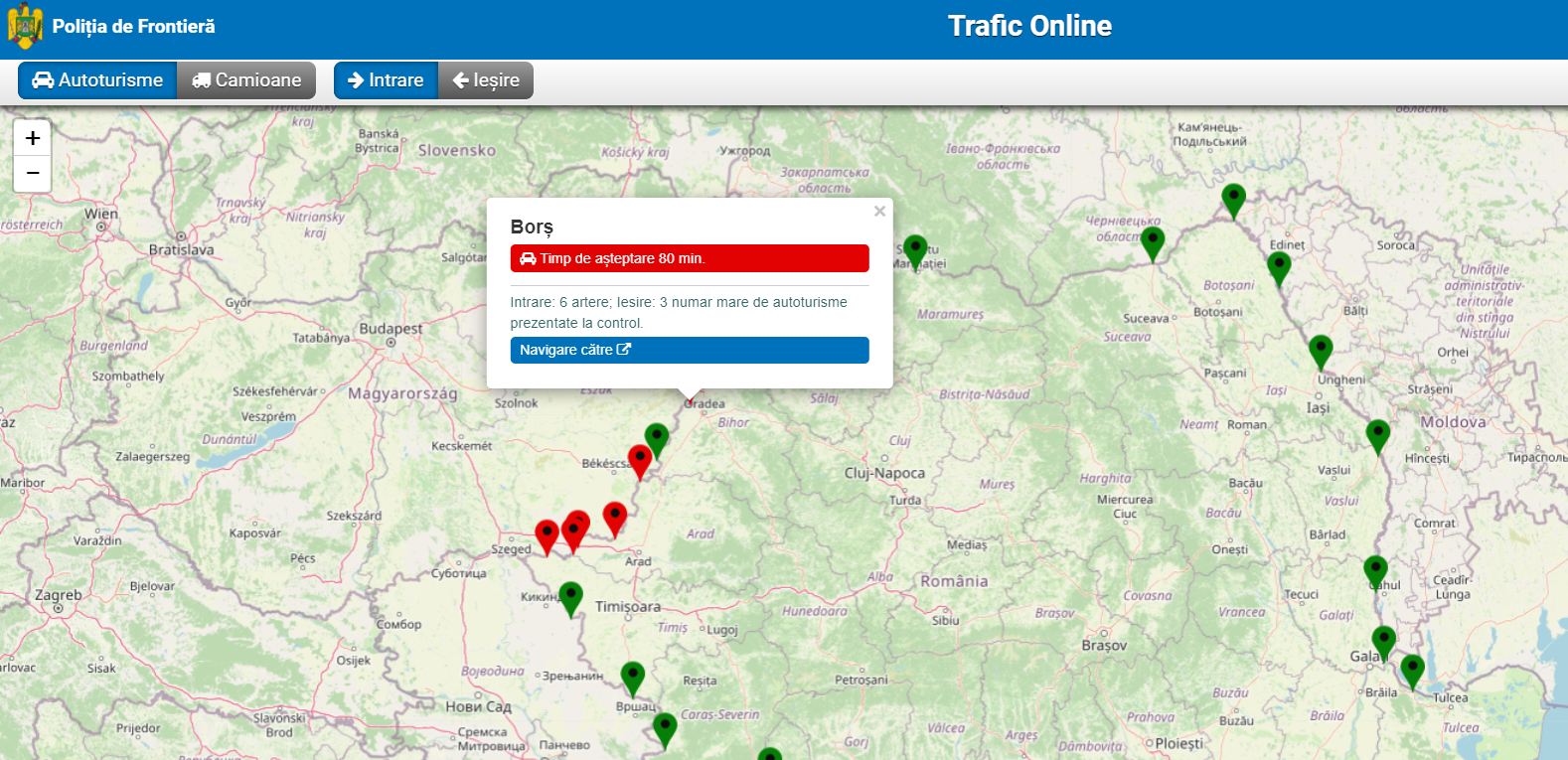 Știrea inițială: Potrivit site-ului Trafic Online, creat de Poliția de Frontieră, timpii de așteptare pentru autoturisme sunt ridicați, în special în PTF Borș1 și Valea lui Mihai. Aici șoferii autoturismelor au de așteptat 80 minute / respectiv 90 de minute pentru a tranzita granița.