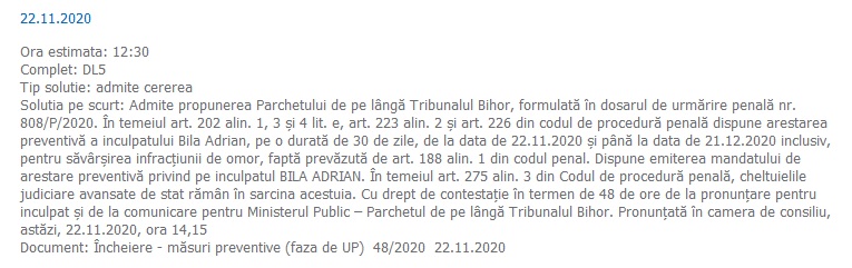 Nu au fost transmise încă date despre mobilul crimei, dar victima a decedat, iar autorul a fost prins imediat după crima comisă vineri, 21. Agresorul a și fost arestat preventiv, spun surse JB&Bihon.
