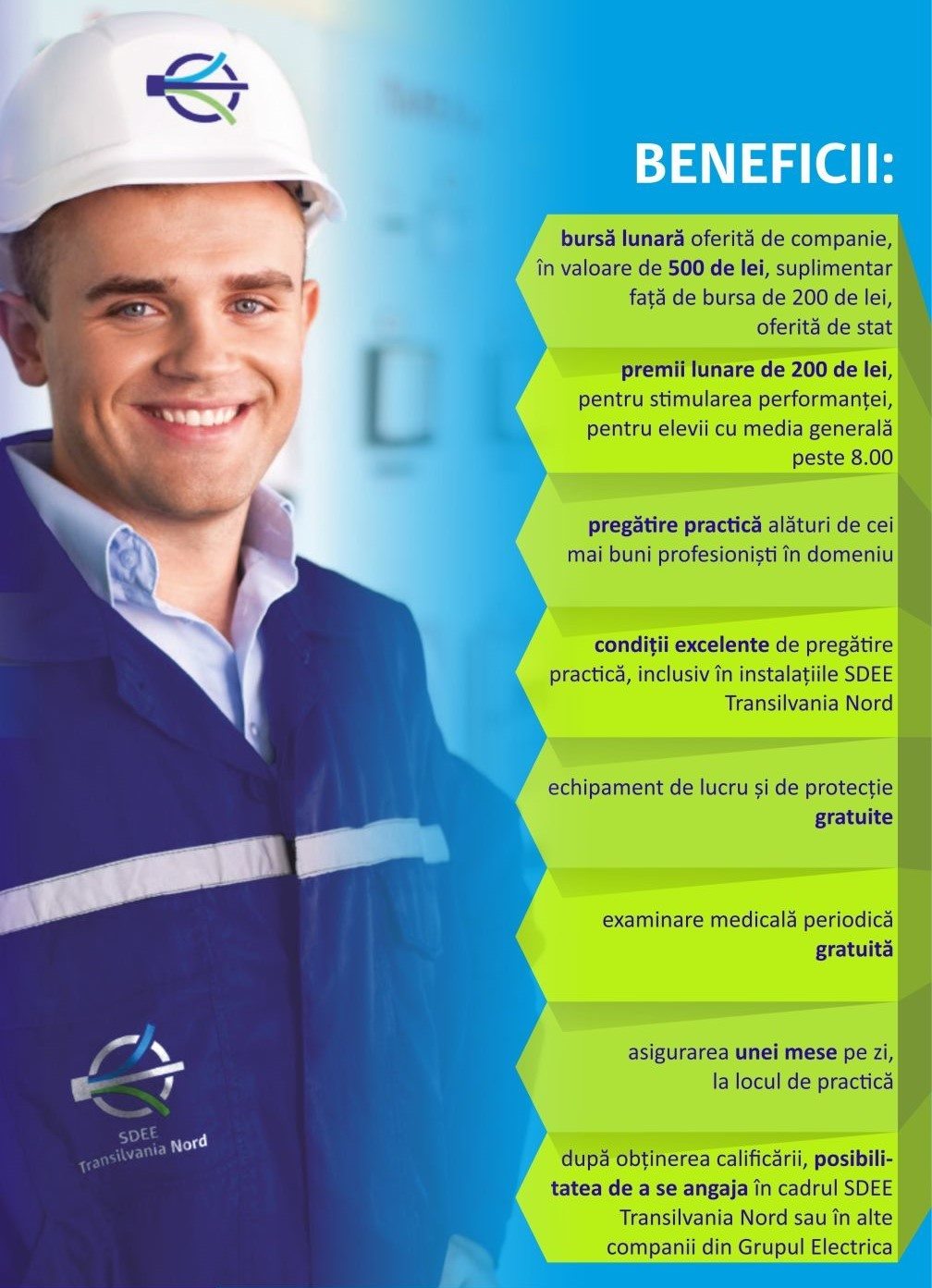 În plus, li se va asigura o masa pe zi, la locul de practică. După obținerea calificării pentru meseria de electrician, absolvenții vor avea posibilitatea de a se angaja în cadrul SDEE Transilvania Nord sau în altă companie din Grupul Electrica.